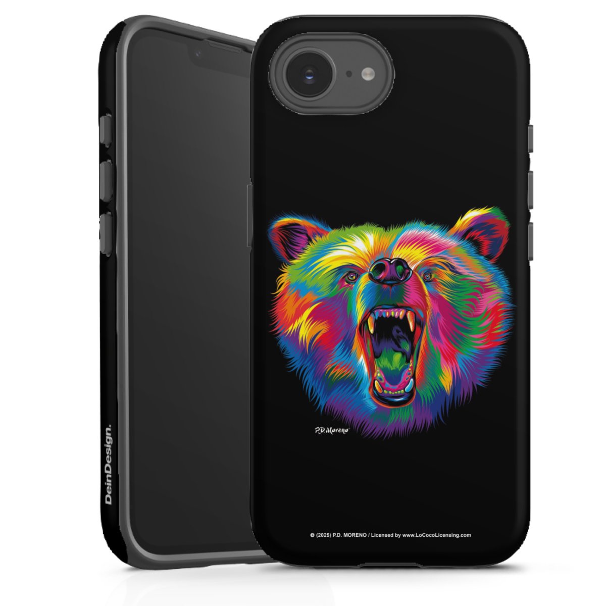 Bei dieser Handyhülle nutzen wird den besonders langlebigen Sublimationsdruck. Dieses raffinierte Druckverfahren sticht durch sein hochwertiges, gestochen scharfes Druckbild in brillanten Farben hervor. Der Druckbereich umfasst die ganze Hartschale inklusive der Ecken und Kanten, lediglich der Silikon-Einleger bleibt einfarbig schwarz. Wähle für Dein Design entweder eines unserer exklusiven Shop-Motive, oder werde kreativ und gestalte Dein Wunschdesign zum Beispiel mit Fotos und Overlays selbst.