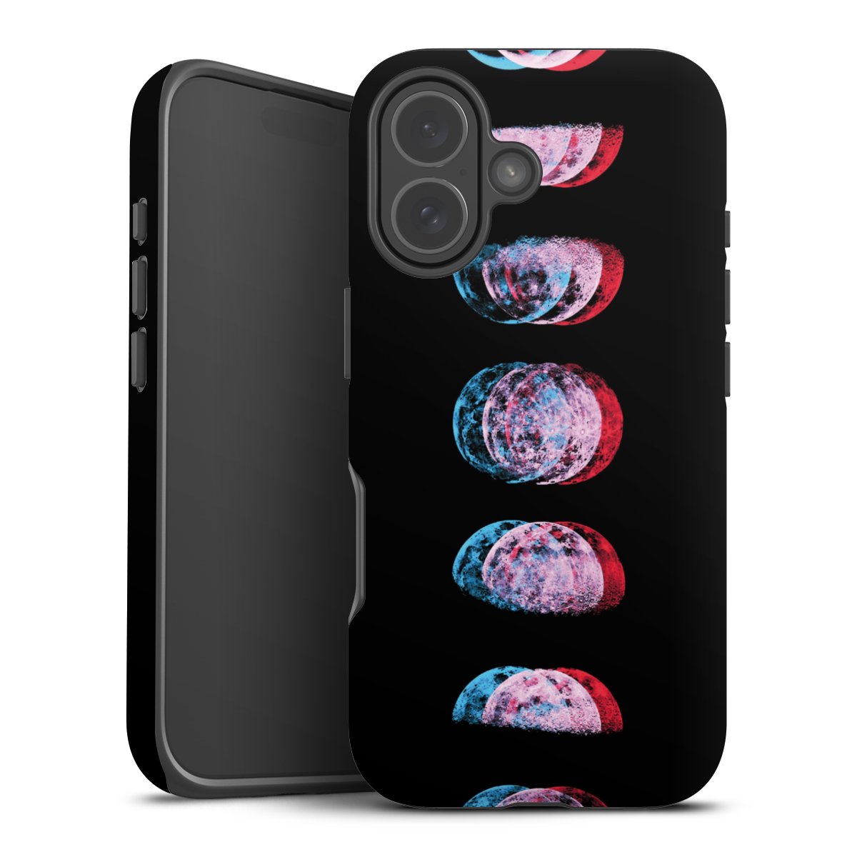 Bei dieser Handyhülle nutzen wird den besonders langlebigen Sublimationsdruck. Dieses raffinierte Druckverfahren sticht durch sein hochwertiges, gestochen scharfes Druckbild in brillanten Farben hervor. Der Druckbereich umfasst die ganze Hartschale inklusive der Ecken und Kanten, lediglich der Silikon-Einleger bleibt einfarbig schwarz. Wähle für Dein Design entweder eines unserer exklusiven Shop-Motive, oder werde kreativ und gestalte Dein Wunschdesign zum Beispiel mit Fotos und Overlays selbst.