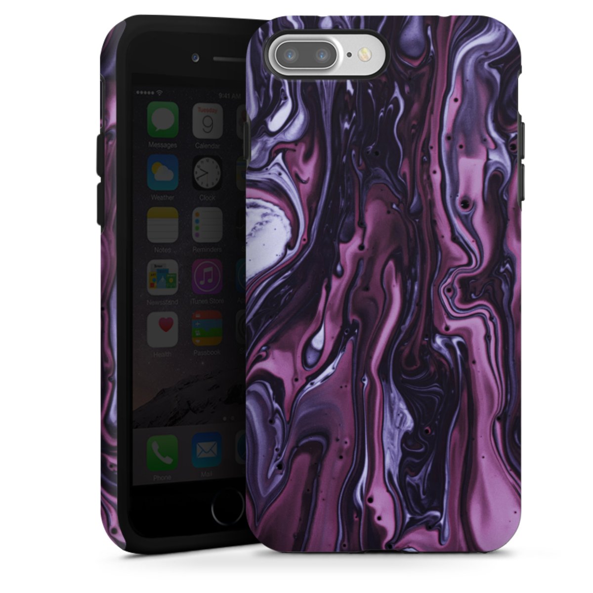 Bei dieser Handyhülle nutzen wird den besonders langlebigen Sublimationsdruck. Dieses raffinierte Druckverfahren sticht durch sein hochwertiges, gestochen scharfes Druckbild in brillanten Farben hervor. Der Druckbereich umfasst die ganze Hartschale inklusive der Ecken und Kanten, lediglich der Silikon-Einleger bleibt einfarbig schwarz. Wähle für Dein Design entweder eines unserer exklusiven Shop-Motive, oder werde kreativ und gestalte Dein Wunschdesign zum Beispiel mit Fotos und Overlays selbst.