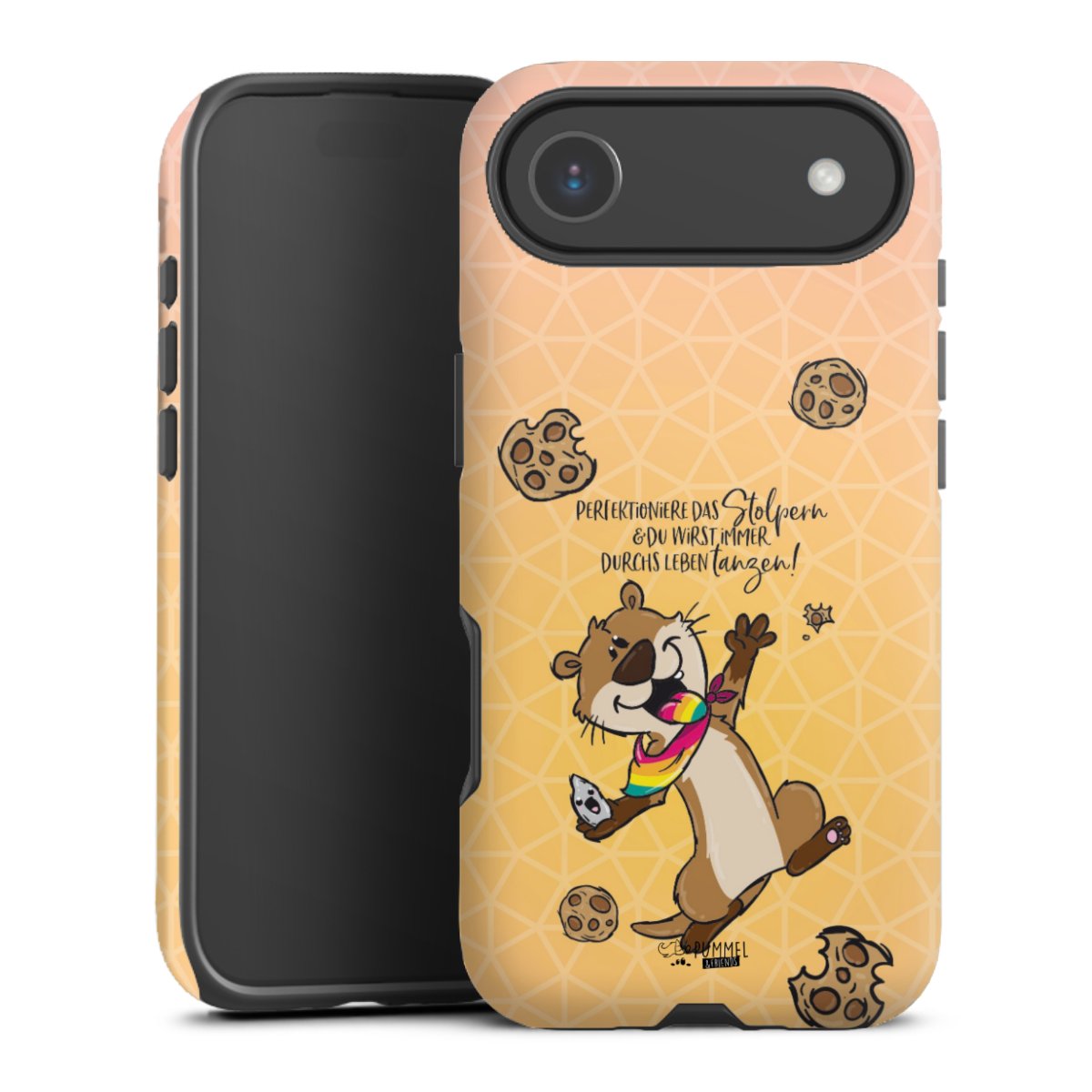 Bei dieser Handyhülle nutzen wird den besonders langlebigen Sublimationsdruck. Dieses raffinierte Druckverfahren sticht durch sein hochwertiges, gestochen scharfes Druckbild in brillanten Farben hervor. Der Druckbereich umfasst die ganze Hartschale inklusive der Ecken und Kanten, lediglich der Silikon-Einleger bleibt einfarbig schwarz. Wähle für Dein Design entweder eines unserer exklusiven Shop-Motive, oder werde kreativ und gestalte Dein Wunschdesign zum Beispiel mit Fotos und Overlays selbst.