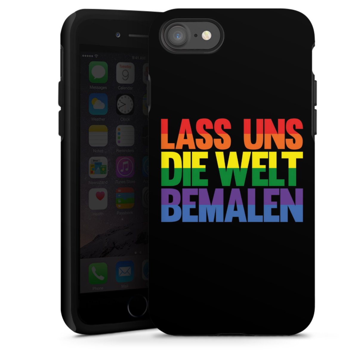 Bei dieser Handyhülle nutzen wird den besonders langlebigen Sublimationsdruck. Dieses raffinierte Druckverfahren sticht durch sein hochwertiges, gestochen scharfes Druckbild in brillanten Farben hervor. Der Druckbereich umfasst die ganze Hartschale inklusive der Ecken und Kanten, lediglich der Silikon-Einleger bleibt einfarbig schwarz. Wähle für Dein Design entweder eines unserer exklusiven Shop-Motive, oder werde kreativ und gestalte Dein Wunschdesign zum Beispiel mit Fotos und Overlays selbst.