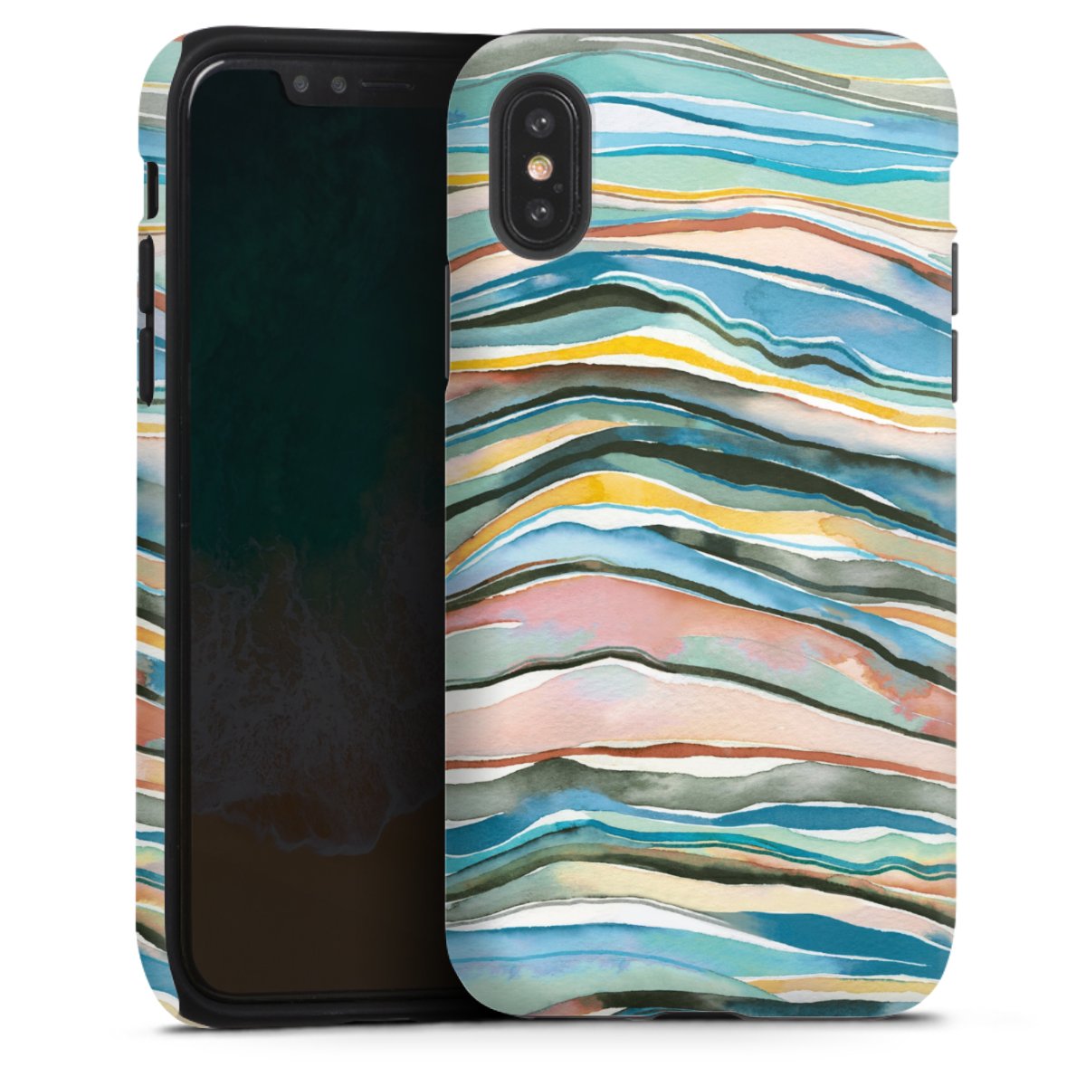 Bei dieser Handyhülle nutzen wird den besonders langlebigen Sublimationsdruck. Dieses raffinierte Druckverfahren sticht durch sein hochwertiges, gestochen scharfes Druckbild in brillanten Farben hervor. Der Druckbereich umfasst die ganze Hartschale inklusive der Ecken und Kanten, lediglich der Silikon-Einleger bleibt einfarbig schwarz. Wähle für Dein Design entweder eines unserer exklusiven Shop-Motive, oder werde kreativ und gestalte Dein Wunschdesign zum Beispiel mit Fotos und Overlays selbst.