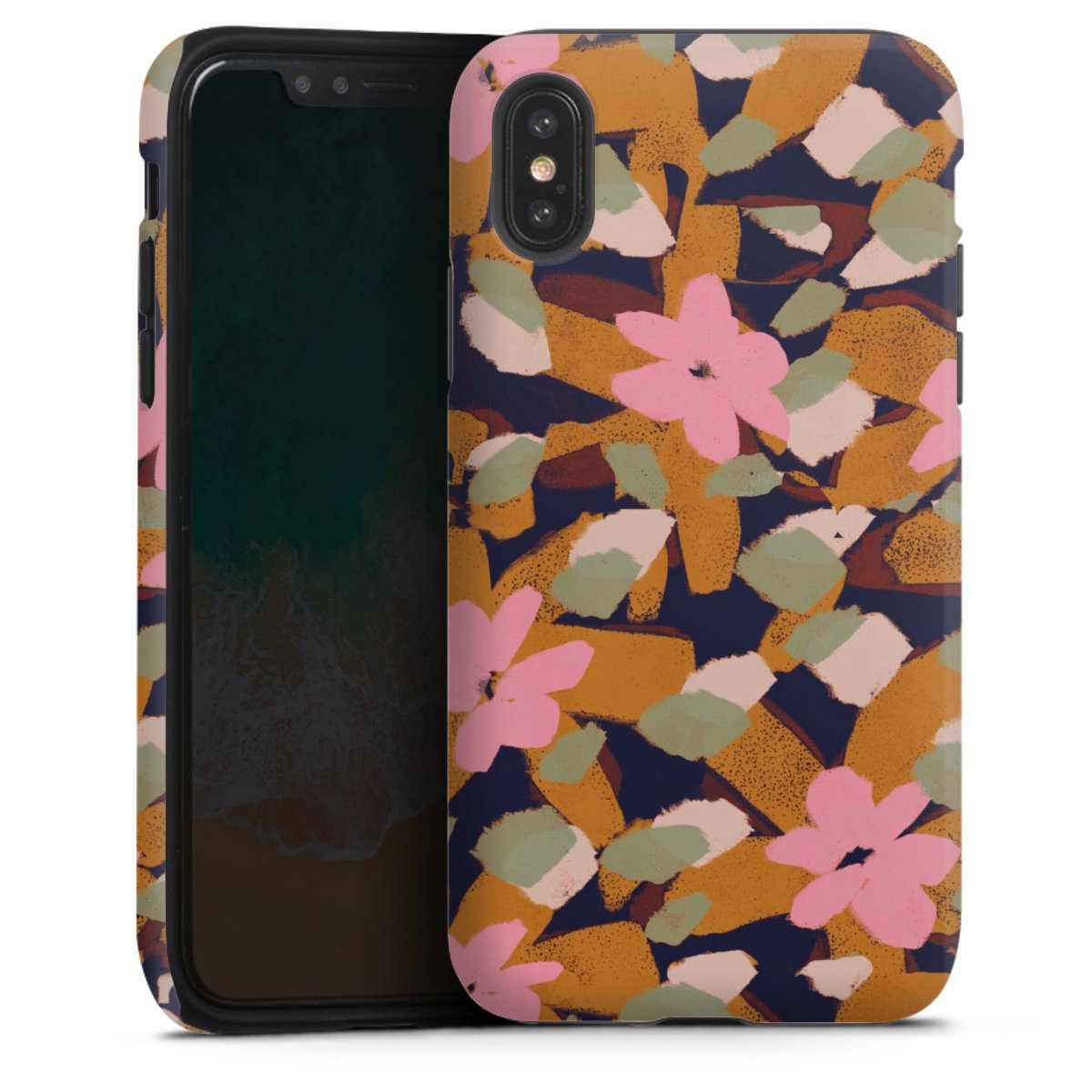 Bei dieser Handyhülle nutzen wird den besonders langlebigen Sublimationsdruck. Dieses raffinierte Druckverfahren sticht durch sein hochwertiges, gestochen scharfes Druckbild in brillanten Farben hervor. Der Druckbereich umfasst die ganze Hartschale inklusive der Ecken und Kanten, lediglich der Silikon-Einleger bleibt einfarbig schwarz. Wähle für Dein Design entweder eines unserer exklusiven Shop-Motive, oder werde kreativ und gestalte Dein Wunschdesign zum Beispiel mit Fotos und Overlays selbst.
