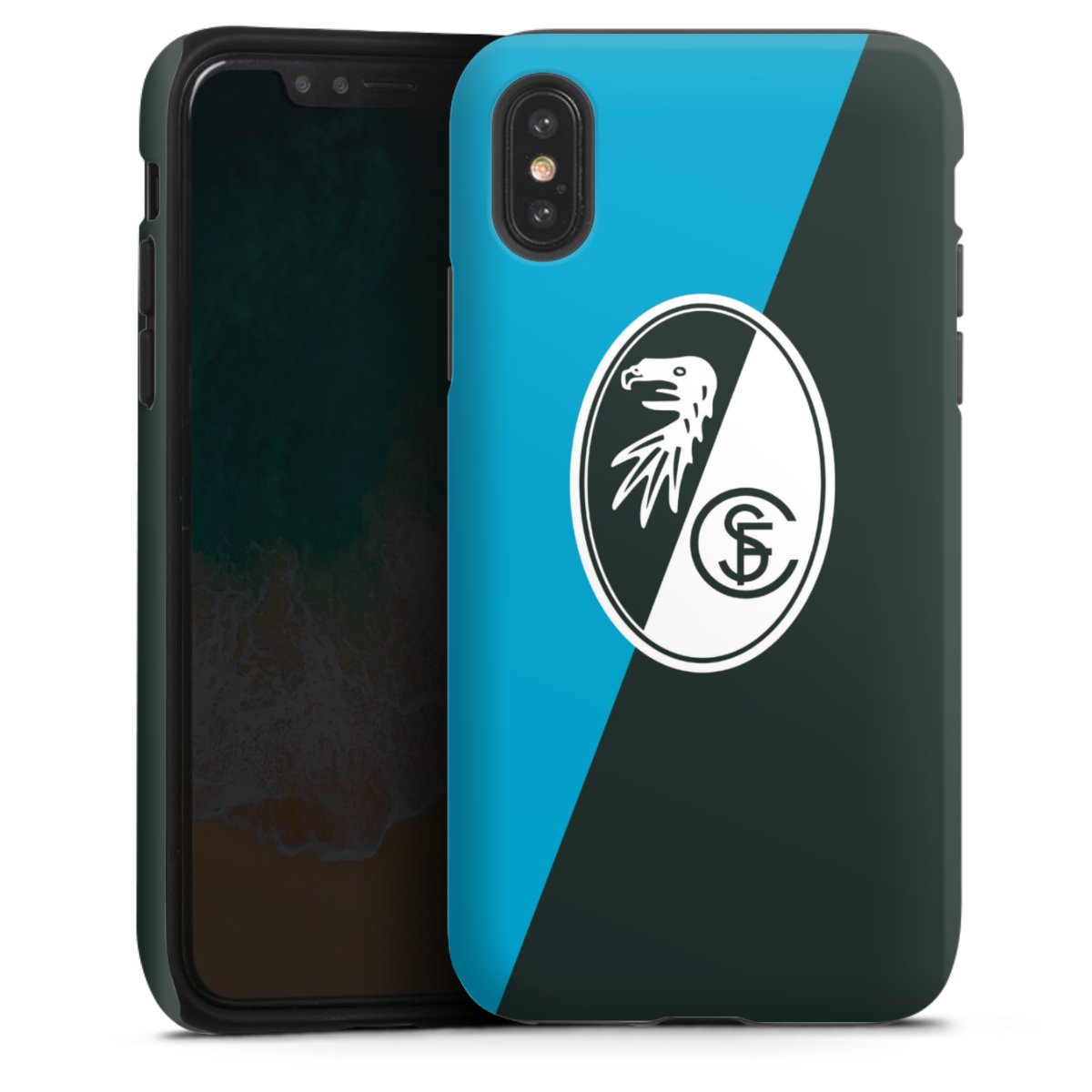 Bei DeinDesign kannst Du Dir eine individuelle SC-Freiburg-Handyhülle aussuchen, auf der das stilvolle schwarz-weiße Logo mit dem Greifenkopf zu sehen ist. Durch eine solche Hülle erhält Dein Smartphone ein unverkennbar individuelles Design. Der SC-Freiburg-Shop bietet lizensierte Fanartikel für alle Fans der Breisgau-Brasilianer.