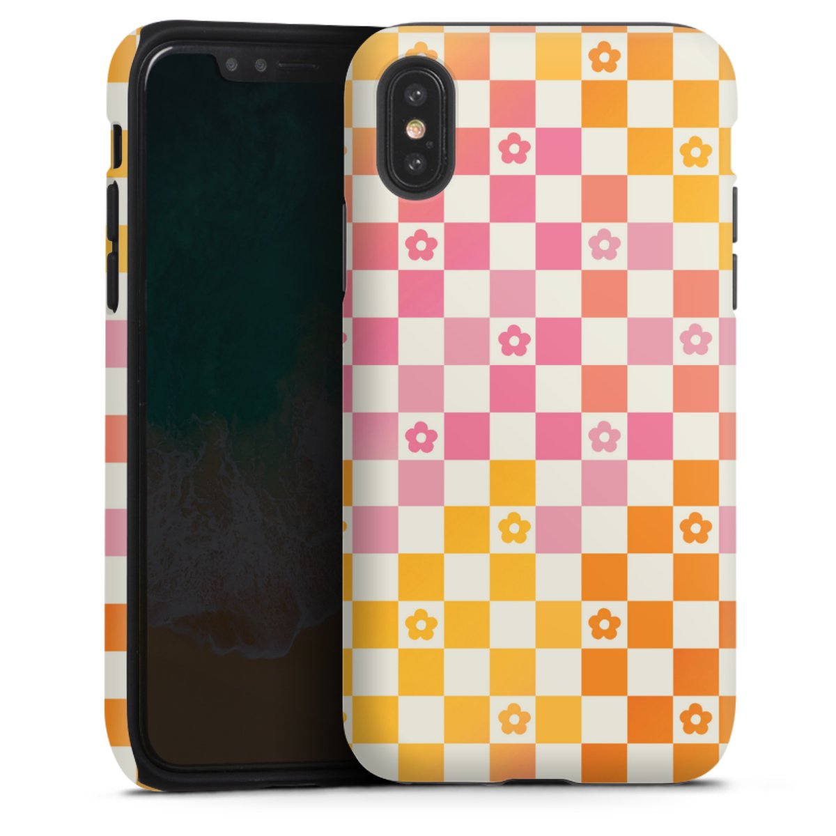 Bei dieser Handyhülle nutzen wird den besonders langlebigen Sublimationsdruck. Dieses raffinierte Druckverfahren sticht durch sein hochwertiges, gestochen scharfes Druckbild in brillanten Farben hervor. Der Druckbereich umfasst die ganze Hartschale inklusive der Ecken und Kanten, lediglich der Silikon-Einleger bleibt einfarbig schwarz. Wähle für Dein Design entweder eines unserer exklusiven Shop-Motive, oder werde kreativ und gestalte Dein Wunschdesign zum Beispiel mit Fotos und Overlays selbst.