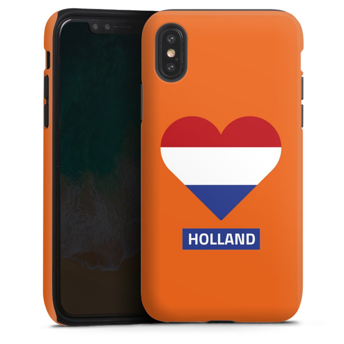 Bei dieser Handyhülle nutzen wird den besonders langlebigen Sublimationsdruck. Dieses raffinierte Druckverfahren sticht durch sein hochwertiges, gestochen scharfes Druckbild in brillanten Farben hervor. Der Druckbereich umfasst die ganze Hartschale inklusive der Ecken und Kanten, lediglich der Silikon-Einleger bleibt einfarbig schwarz. Wähle für Dein Design entweder eines unserer exklusiven Shop-Motive, oder werde kreativ und gestalte Dein Wunschdesign zum Beispiel mit Fotos und Overlays selbst.