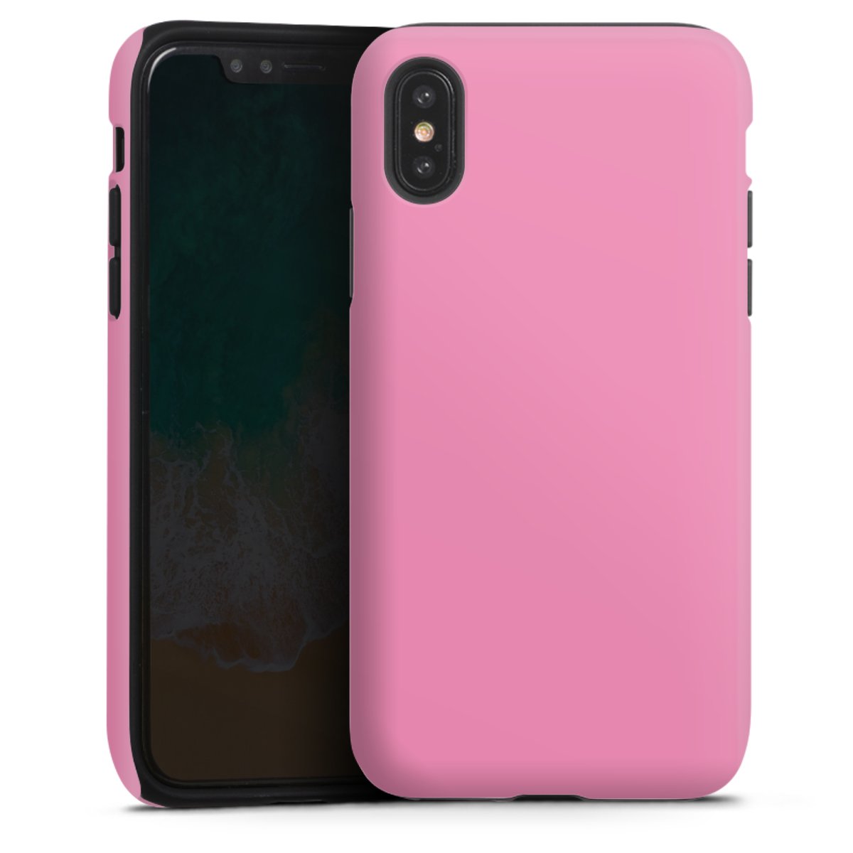 Unsere sicherste Schutzhülle vereint die Vorteile der Silikonhülle mit den Vorzügen des Premium Cases und besteht aus zwei Teilen: Innen federt der flexible Silikonkern aus robustem TPU (thermoplastisches Polyurethan) zuverlässig Stöße und Stürze ab, außen sorgt die widerstandsfähige und langlebige Hartschale aus Polycarbonat für zusätzliche Stabilität. Die Oberfläche der insgesamt 2,6 mm starken Hülle fühlt sich angenehm glatt an und macht das Tough Case zu einem echten Handschmeichler. Die Handyhülle ist in glänzend und matt erhältlich, der Silikoneinleger ist Schwarz.