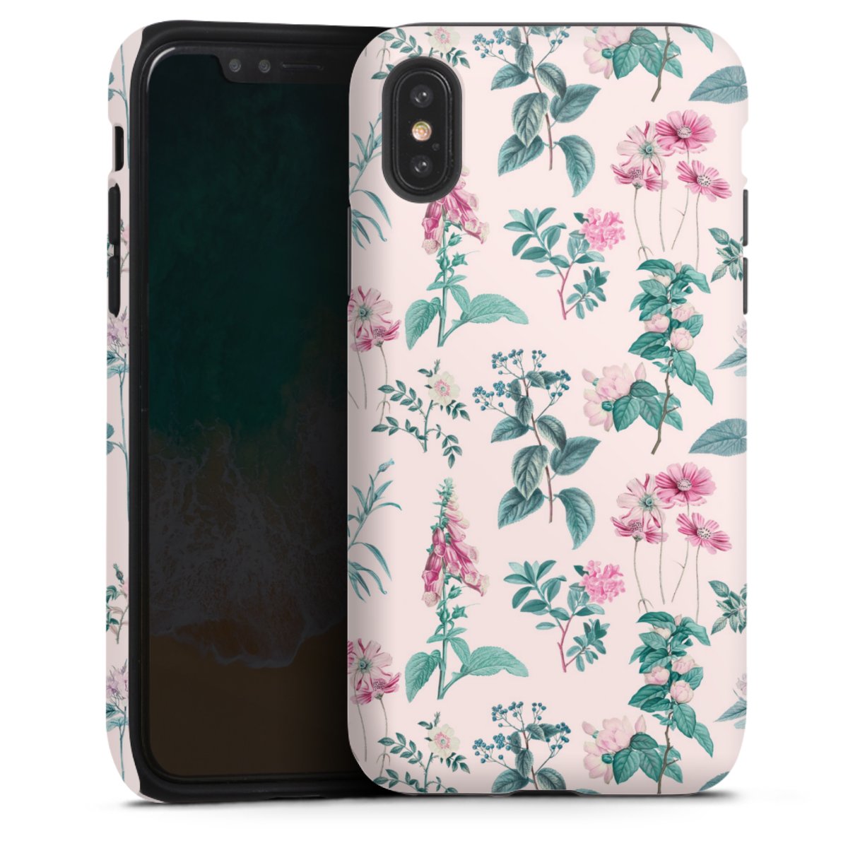 Bei dieser Handyhülle nutzen wird den besonders langlebigen Sublimationsdruck. Dieses raffinierte Druckverfahren sticht durch sein hochwertiges, gestochen scharfes Druckbild in brillanten Farben hervor. Der Druckbereich umfasst die ganze Hartschale inklusive der Ecken und Kanten, lediglich der Silikon-Einleger bleibt einfarbig schwarz. Wähle für Dein Design entweder eines unserer exklusiven Shop-Motive, oder werde kreativ und gestalte Dein Wunschdesign zum Beispiel mit Fotos und Overlays selbst.