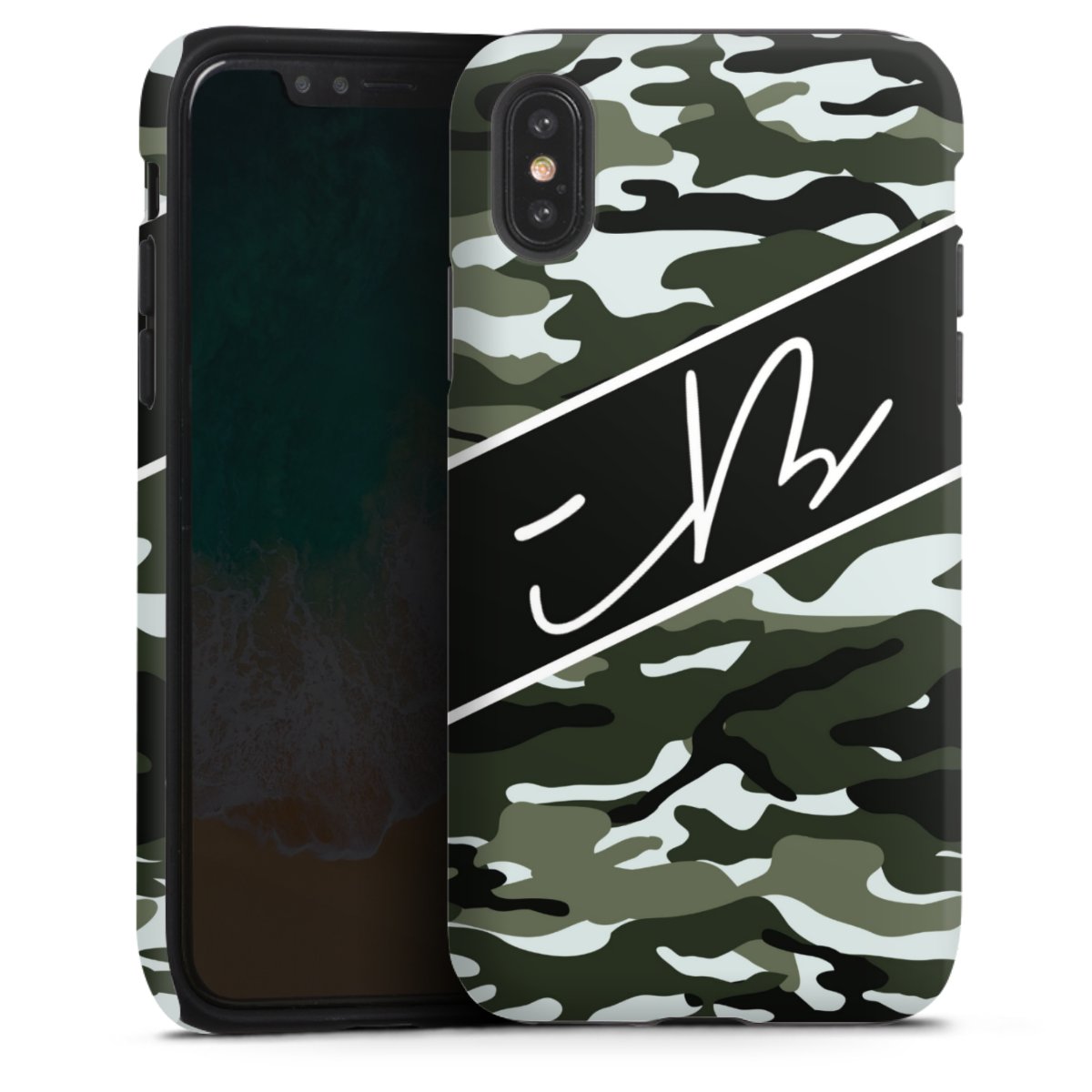 Bei dieser Handyhülle nutzen wird den besonders langlebigen Sublimationsdruck. Dieses raffinierte Druckverfahren sticht durch sein hochwertiges, gestochen scharfes Druckbild in brillanten Farben hervor. Der Druckbereich umfasst die ganze Hartschale inklusive der Ecken und Kanten, lediglich der Silikon-Einleger bleibt einfarbig schwarz. Wähle für Dein Design entweder eines unserer exklusiven Shop-Motive, oder werde kreativ und gestalte Dein Wunschdesign zum Beispiel mit Fotos und Overlays selbst.