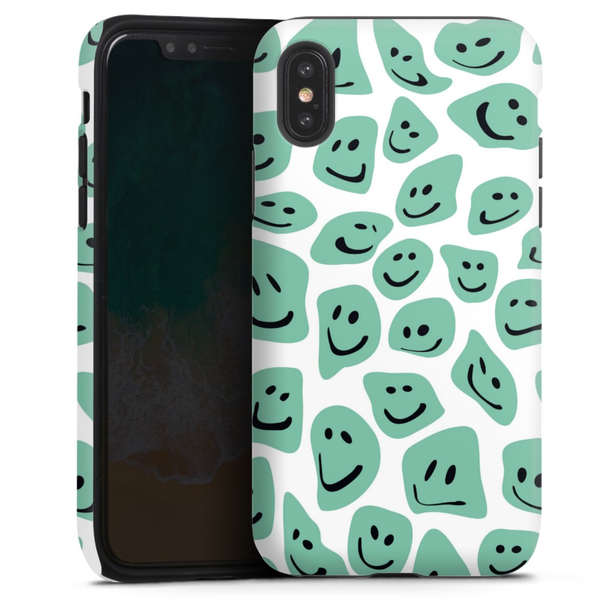 Bei dieser Handyhülle nutzen wird den besonders langlebigen Sublimationsdruck. Dieses raffinierte Druckverfahren sticht durch sein hochwertiges, gestochen scharfes Druckbild in brillanten Farben hervor. Der Druckbereich umfasst die ganze Hartschale inklusive der Ecken und Kanten, lediglich der Silikon-Einleger bleibt einfarbig schwarz. Wähle für Dein Design entweder eines unserer exklusiven Shop-Motive, oder werde kreativ und gestalte Dein Wunschdesign zum Beispiel mit Fotos und Overlays selbst.