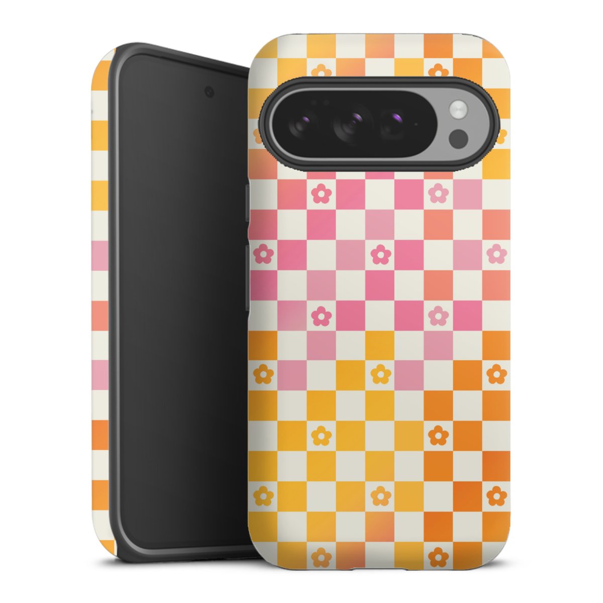 Bei dieser Handyhülle nutzen wird den besonders langlebigen Sublimationsdruck. Dieses raffinierte Druckverfahren sticht durch sein hochwertiges, gestochen scharfes Druckbild in brillanten Farben hervor. Der Druckbereich umfasst die ganze Hartschale inklusive der Ecken und Kanten, lediglich der Silikon-Einleger bleibt einfarbig schwarz. Wähle für Dein Design entweder eines unserer exklusiven Shop-Motive, oder werde kreativ und gestalte Dein Wunschdesign zum Beispiel mit Fotos und Overlays selbst.