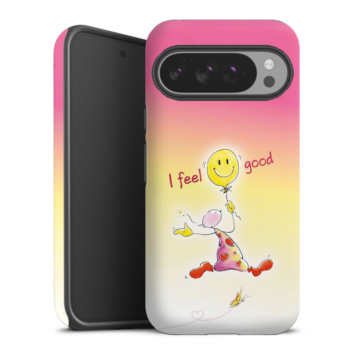 Bei dieser Handyhülle nutzen wird den besonders langlebigen Sublimationsdruck. Dieses raffinierte Druckverfahren sticht durch sein hochwertiges, gestochen scharfes Druckbild in brillanten Farben hervor. Der Druckbereich umfasst die ganze Hartschale inklusive der Ecken und Kanten, lediglich der Silikon-Einleger bleibt einfarbig schwarz. Wähle für Dein Design entweder eines unserer exklusiven Shop-Motive, oder werde kreativ und gestalte Dein Wunschdesign zum Beispiel mit Fotos und Overlays selbst.