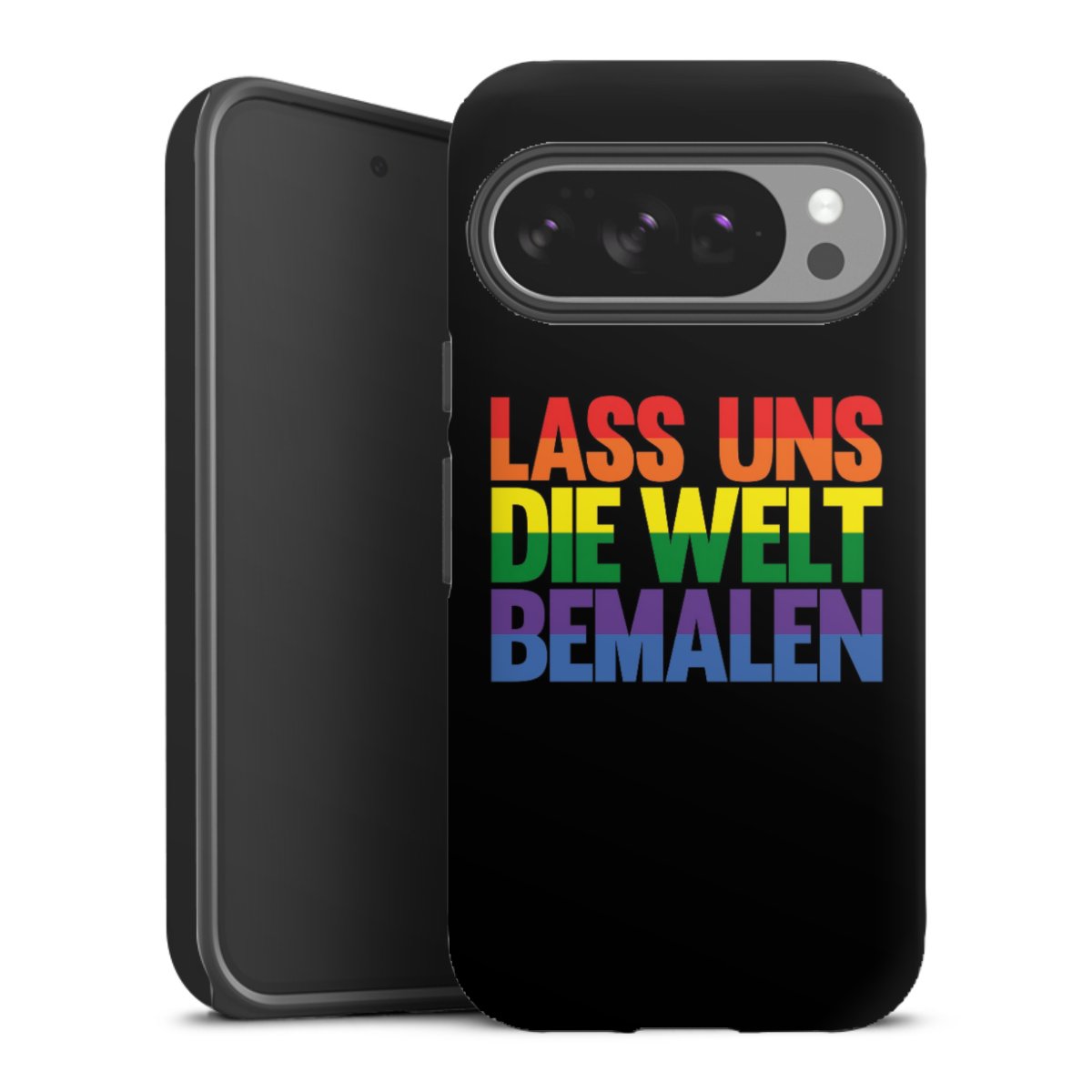 Bei dieser Handyhülle nutzen wird den besonders langlebigen Sublimationsdruck. Dieses raffinierte Druckverfahren sticht durch sein hochwertiges, gestochen scharfes Druckbild in brillanten Farben hervor. Der Druckbereich umfasst die ganze Hartschale inklusive der Ecken und Kanten, lediglich der Silikon-Einleger bleibt einfarbig schwarz. Wähle für Dein Design entweder eines unserer exklusiven Shop-Motive, oder werde kreativ und gestalte Dein Wunschdesign zum Beispiel mit Fotos und Overlays selbst.