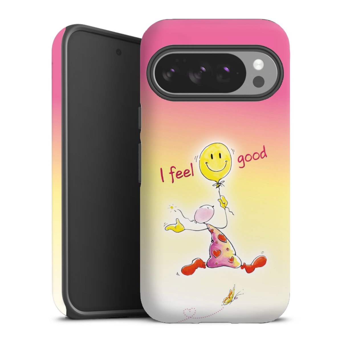 Bei dieser Handyhülle nutzen wird den besonders langlebigen Sublimationsdruck. Dieses raffinierte Druckverfahren sticht durch sein hochwertiges, gestochen scharfes Druckbild in brillanten Farben hervor. Der Druckbereich umfasst die ganze Hartschale inklusive der Ecken und Kanten, lediglich der Silikon-Einleger bleibt einfarbig schwarz. Wähle für Dein Design entweder eines unserer exklusiven Shop-Motive, oder werde kreativ und gestalte Dein Wunschdesign zum Beispiel mit Fotos und Overlays selbst.