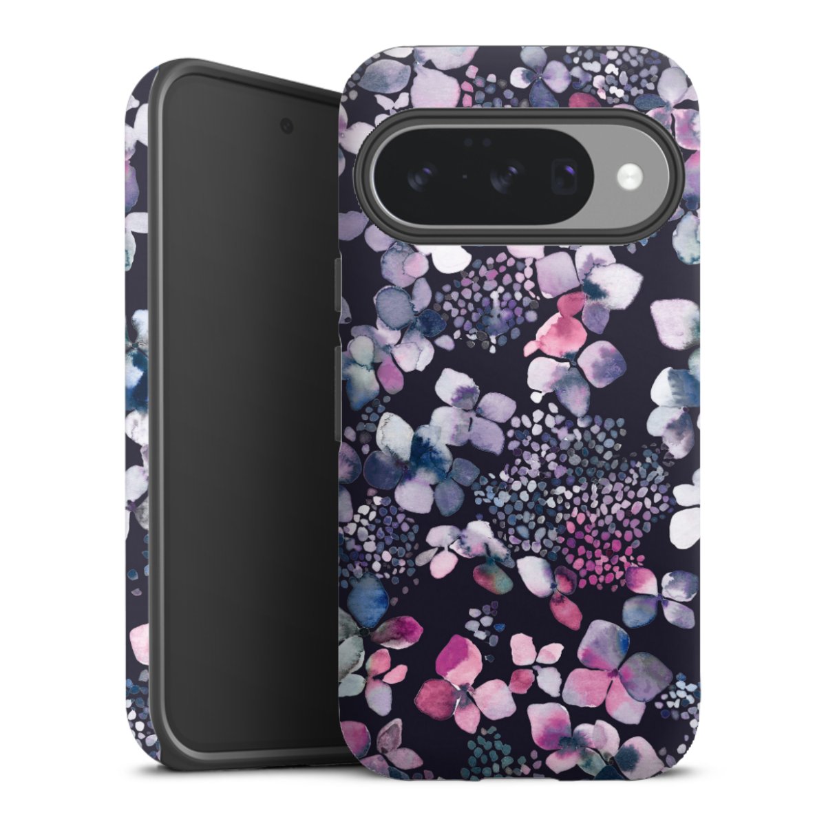 Bei dieser Handyhülle nutzen wird den besonders langlebigen Sublimationsdruck. Dieses raffinierte Druckverfahren sticht durch sein hochwertiges, gestochen scharfes Druckbild in brillanten Farben hervor. Der Druckbereich umfasst die ganze Hartschale inklusive der Ecken und Kanten, lediglich der Silikon-Einleger bleibt einfarbig schwarz. Wähle für Dein Design entweder eines unserer exklusiven Shop-Motive, oder werde kreativ und gestalte Dein Wunschdesign zum Beispiel mit Fotos und Overlays selbst.