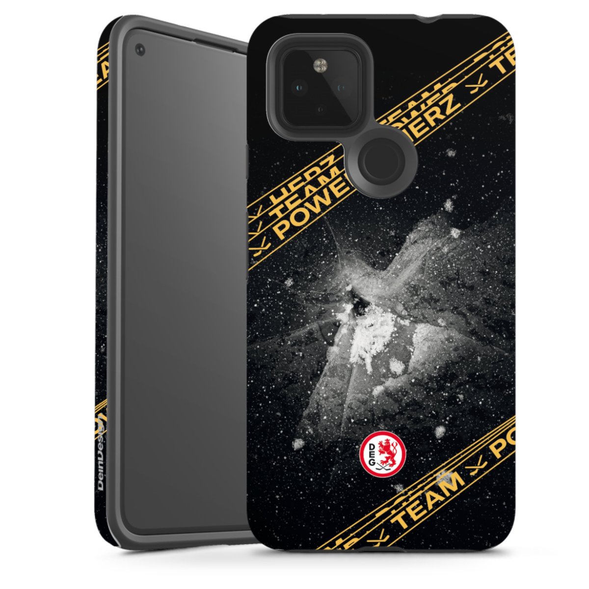 Unsere sicherste Schutzhülle vereint die Vorteile der Silikonhülle mit den Vorzügen des Premium Cases und besteht aus zwei Teilen: Innen federt der flexible Silikonkern aus robustem TPU (thermoplastisches Polyurethan) zuverlässig Stöße und Stürze ab, außen sorgt die widerstandsfähige und langlebige Hartschale aus Polycarbonat für zusätzliche Stabilität. Die Oberfläche der insgesamt 2,6 mm starken Hülle fühlt sich angenehm glatt an und macht das Tough Case zu einem echten Handschmeichler. Die Handyhülle ist in glänzend und matt erhältlich, der Silikoneinleger ist Schwarz.