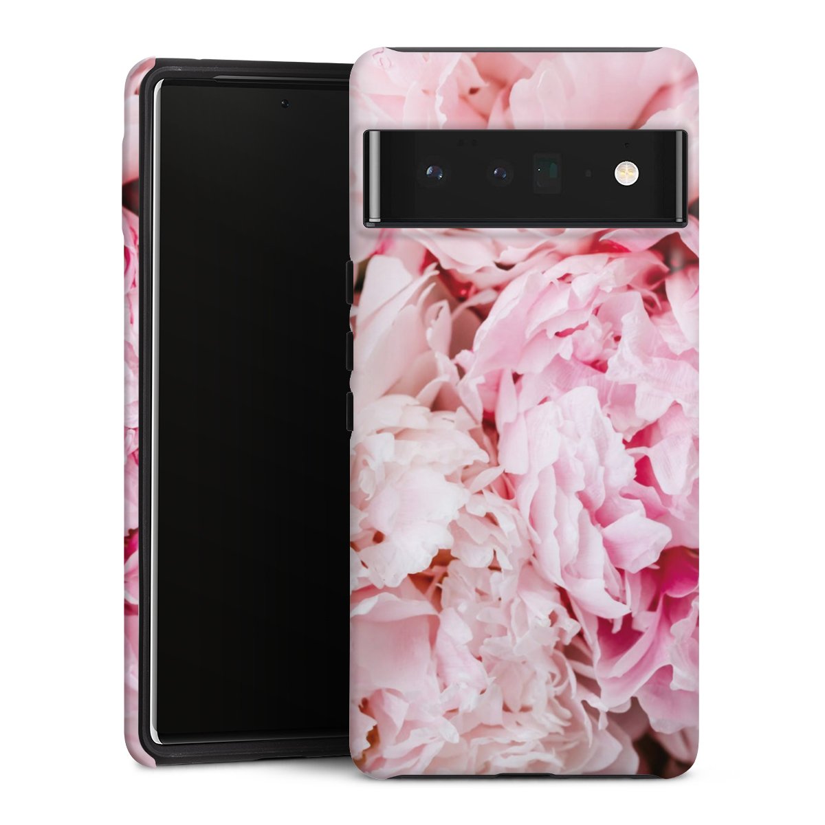 Bei dieser Handyhülle nutzen wird den besonders langlebigen Sublimationsdruck. Dieses raffinierte Druckverfahren sticht durch sein hochwertiges, gestochen scharfes Druckbild in brillanten Farben hervor. Der Druckbereich umfasst die ganze Hartschale inklusive der Ecken und Kanten, lediglich der Silikon-Einleger bleibt einfarbig schwarz. Wähle für Dein Design entweder eines unserer exklusiven Shop-Motive, oder werde kreativ und gestalte Dein Wunschdesign zum Beispiel mit Fotos und Overlays selbst.