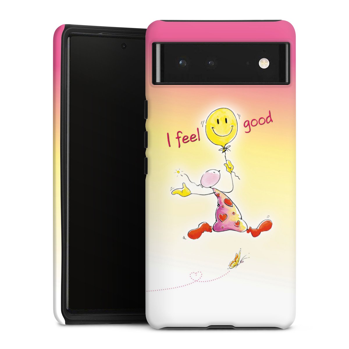 Bei dieser Handyhülle nutzen wird den besonders langlebigen Sublimationsdruck. Dieses raffinierte Druckverfahren sticht durch sein hochwertiges, gestochen scharfes Druckbild in brillanten Farben hervor. Der Druckbereich umfasst die ganze Hartschale inklusive der Ecken und Kanten, lediglich der Silikon-Einleger bleibt einfarbig schwarz. Wähle für Dein Design entweder eines unserer exklusiven Shop-Motive, oder werde kreativ und gestalte Dein Wunschdesign zum Beispiel mit Fotos und Overlays selbst.
