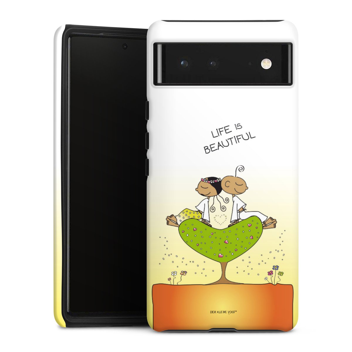Bei dieser Handyhülle nutzen wird den besonders langlebigen Sublimationsdruck. Dieses raffinierte Druckverfahren sticht durch sein hochwertiges, gestochen scharfes Druckbild in brillanten Farben hervor. Der Druckbereich umfasst die ganze Hartschale inklusive der Ecken und Kanten, lediglich der Silikon-Einleger bleibt einfarbig schwarz. Wähle für Dein Design entweder eines unserer exklusiven Shop-Motive, oder werde kreativ und gestalte Dein Wunschdesign zum Beispiel mit Fotos und Overlays selbst.
