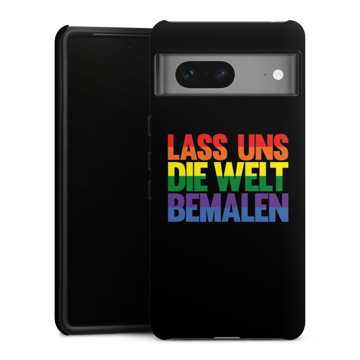 Bei dieser Handyhülle nutzen wird den besonders langlebigen Sublimationsdruck. Dieses raffinierte Druckverfahren sticht durch sein hochwertiges, gestochen scharfes Druckbild in brillanten Farben hervor. Der Druckbereich umfasst die ganze Hartschale inklusive der Ecken und Kanten, lediglich der Silikon-Einleger bleibt einfarbig schwarz. Wähle für Dein Design entweder eines unserer exklusiven Shop-Motive, oder werde kreativ und gestalte Dein Wunschdesign zum Beispiel mit Fotos und Overlays selbst.