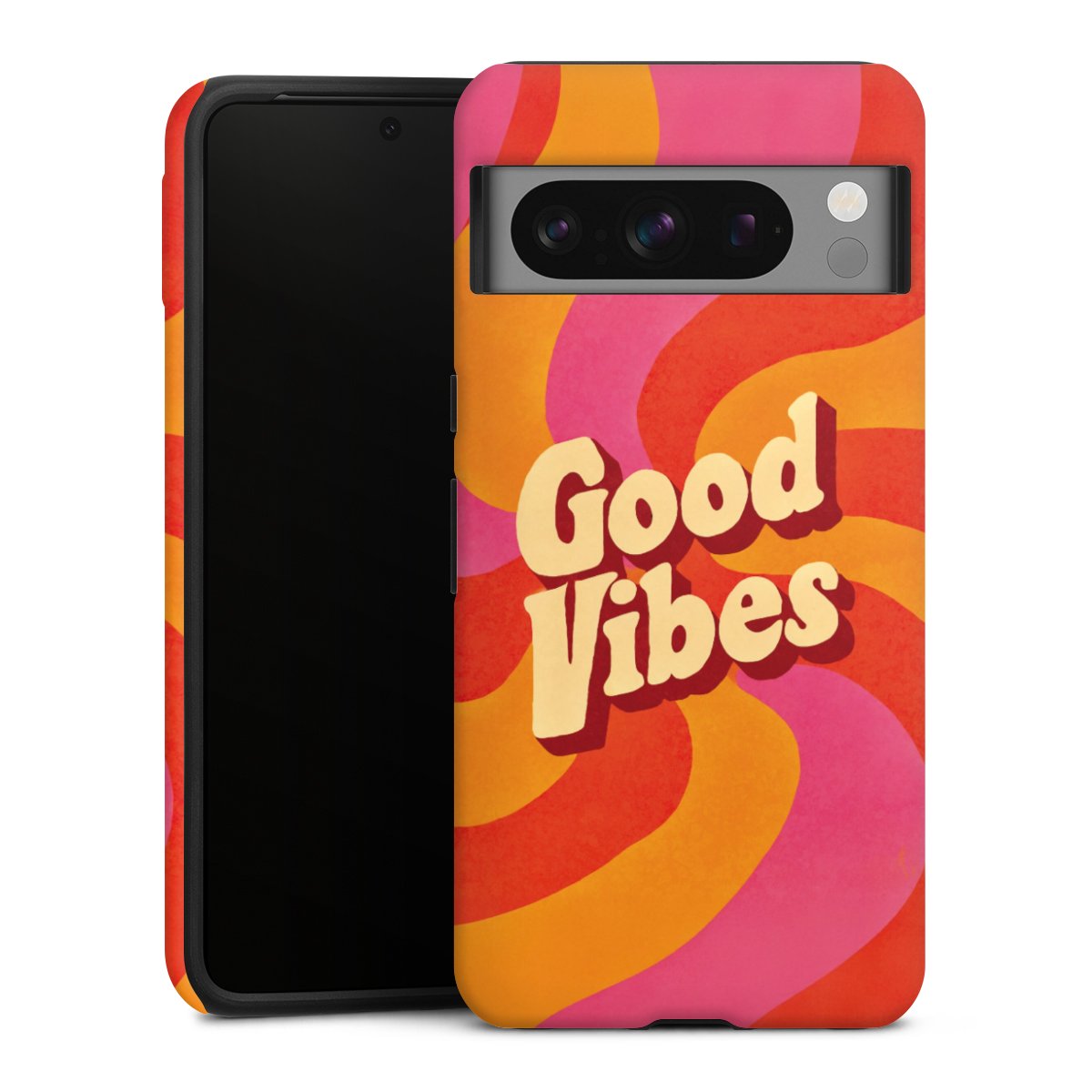 Bei dieser Handyhülle nutzen wird den besonders langlebigen Sublimationsdruck. Dieses raffinierte Druckverfahren sticht durch sein hochwertiges, gestochen scharfes Druckbild in brillanten Farben hervor. Der Druckbereich umfasst die ganze Hartschale inklusive der Ecken und Kanten, lediglich der Silikon-Einleger bleibt einfarbig schwarz. Wähle für Dein Design entweder eines unserer exklusiven Shop-Motive, oder werde kreativ und gestalte Dein Wunschdesign zum Beispiel mit Fotos und Overlays selbst.
