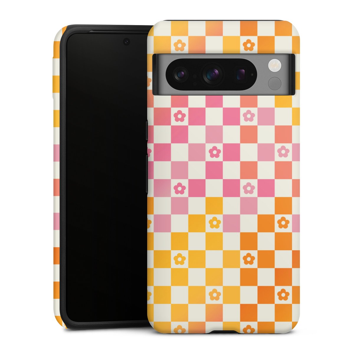 Bei dieser Handyhülle nutzen wird den besonders langlebigen Sublimationsdruck. Dieses raffinierte Druckverfahren sticht durch sein hochwertiges, gestochen scharfes Druckbild in brillanten Farben hervor. Der Druckbereich umfasst die ganze Hartschale inklusive der Ecken und Kanten, lediglich der Silikon-Einleger bleibt einfarbig schwarz. Wähle für Dein Design entweder eines unserer exklusiven Shop-Motive, oder werde kreativ und gestalte Dein Wunschdesign zum Beispiel mit Fotos und Overlays selbst.