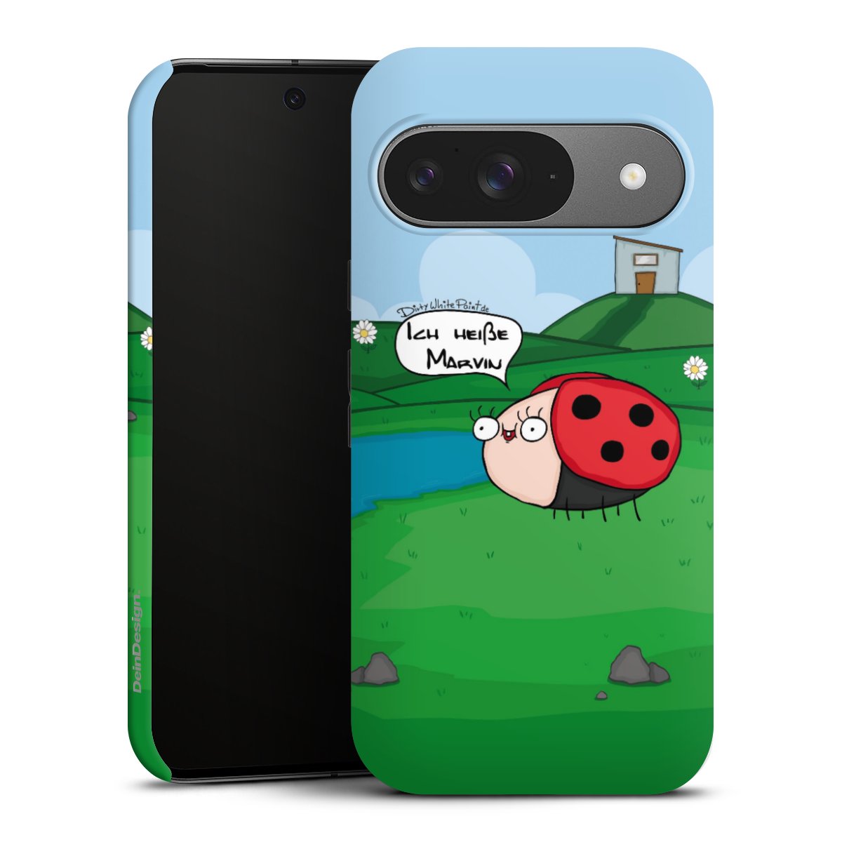 Ob Du Dich nun für Marvin, Günther das Schaf oder doch lieber für die dauerbekiffte Cannabiene entscheidest. Mit einem Motiv von DirtyWhitePaint wird Dein Smartphonen selbst zum Comic.
