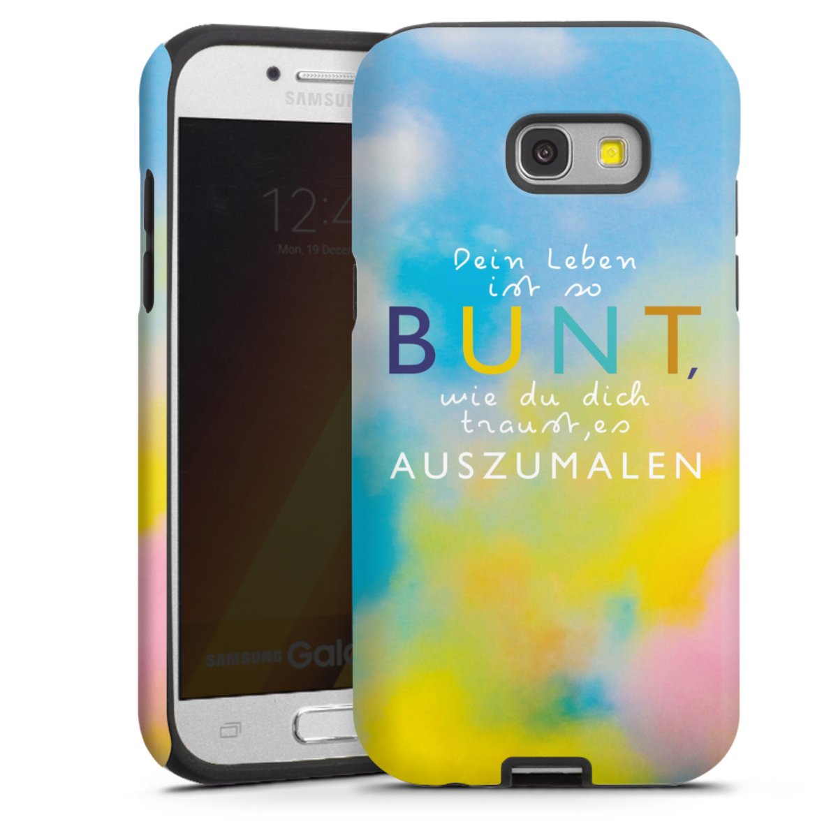 Bei dieser Handyhülle nutzen wird den besonders langlebigen Sublimationsdruck. Dieses raffinierte Druckverfahren sticht durch sein hochwertiges, gestochen scharfes Druckbild in brillanten Farben hervor. Der Druckbereich umfasst die ganze Hartschale inklusive der Ecken und Kanten, lediglich der Silikon-Einleger bleibt einfarbig schwarz. Wähle für Dein Design entweder eines unserer exklusiven Shop-Motive, oder werde kreativ und gestalte Dein Wunschdesign zum Beispiel mit Fotos und Overlays selbst.