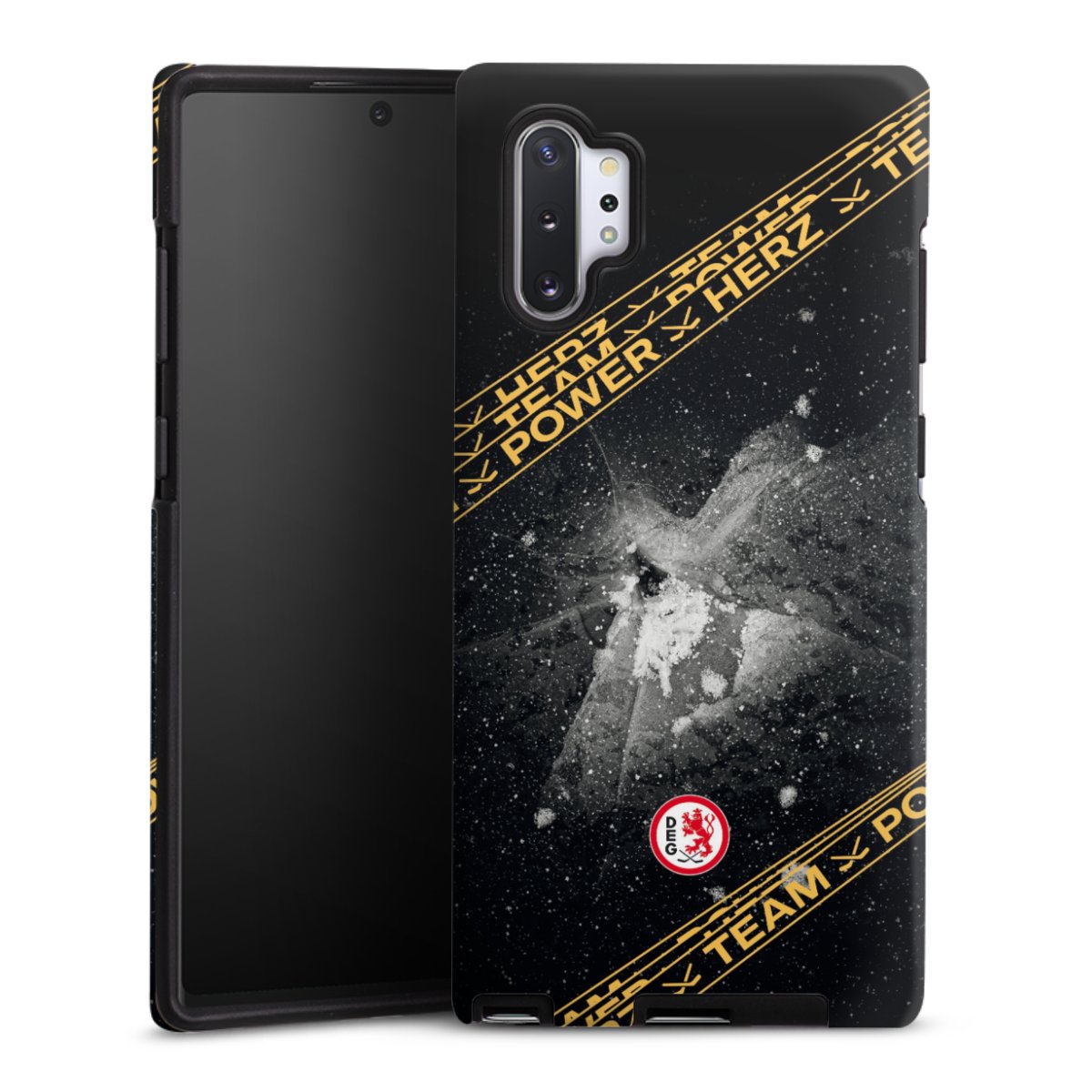 Bei dieser Handyhülle nutzen wird den besonders langlebigen Sublimationsdruck. Dieses raffinierte Druckverfahren sticht durch sein hochwertiges, gestochen scharfes Druckbild in brillanten Farben hervor. Der Druckbereich umfasst die ganze Hartschale inklusive der Ecken und Kanten, lediglich der Silikon-Einleger bleibt einfarbig schwarz. Wähle für Dein Design entweder eines unserer exklusiven Shop-Motive, oder werde kreativ und gestalte Dein Wunschdesign zum Beispiel mit Fotos und Overlays selbst.