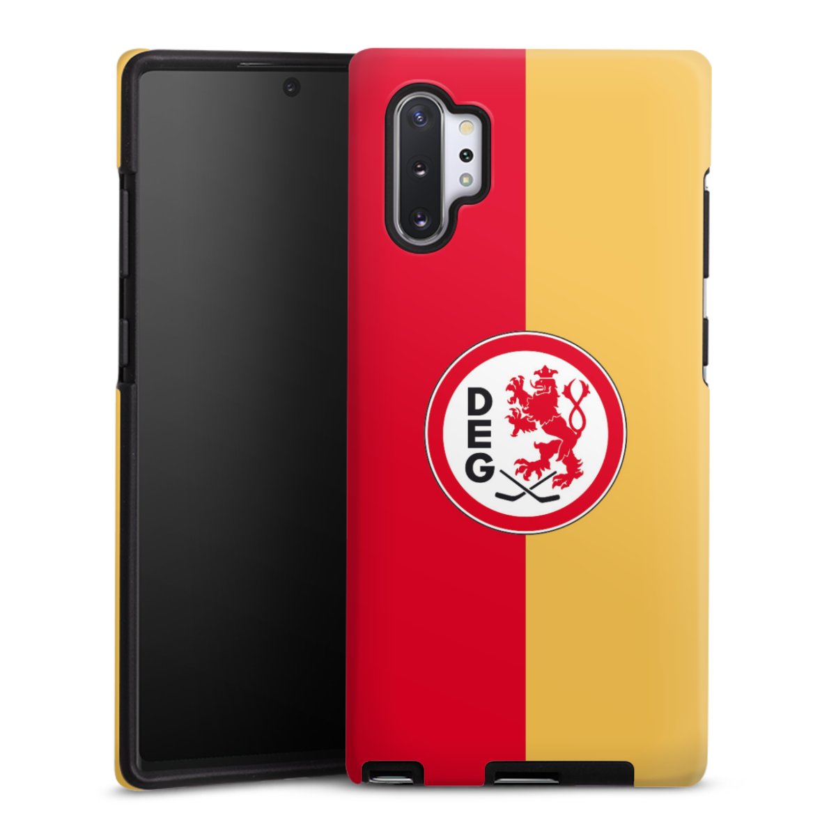 Bei dieser Handyhülle nutzen wird den besonders langlebigen Sublimationsdruck. Dieses raffinierte Druckverfahren sticht durch sein hochwertiges, gestochen scharfes Druckbild in brillanten Farben hervor. Der Druckbereich umfasst die ganze Hartschale inklusive der Ecken und Kanten, lediglich der Silikon-Einleger bleibt einfarbig schwarz. Wähle für Dein Design entweder eines unserer exklusiven Shop-Motive, oder werde kreativ und gestalte Dein Wunschdesign zum Beispiel mit Fotos und Overlays selbst.