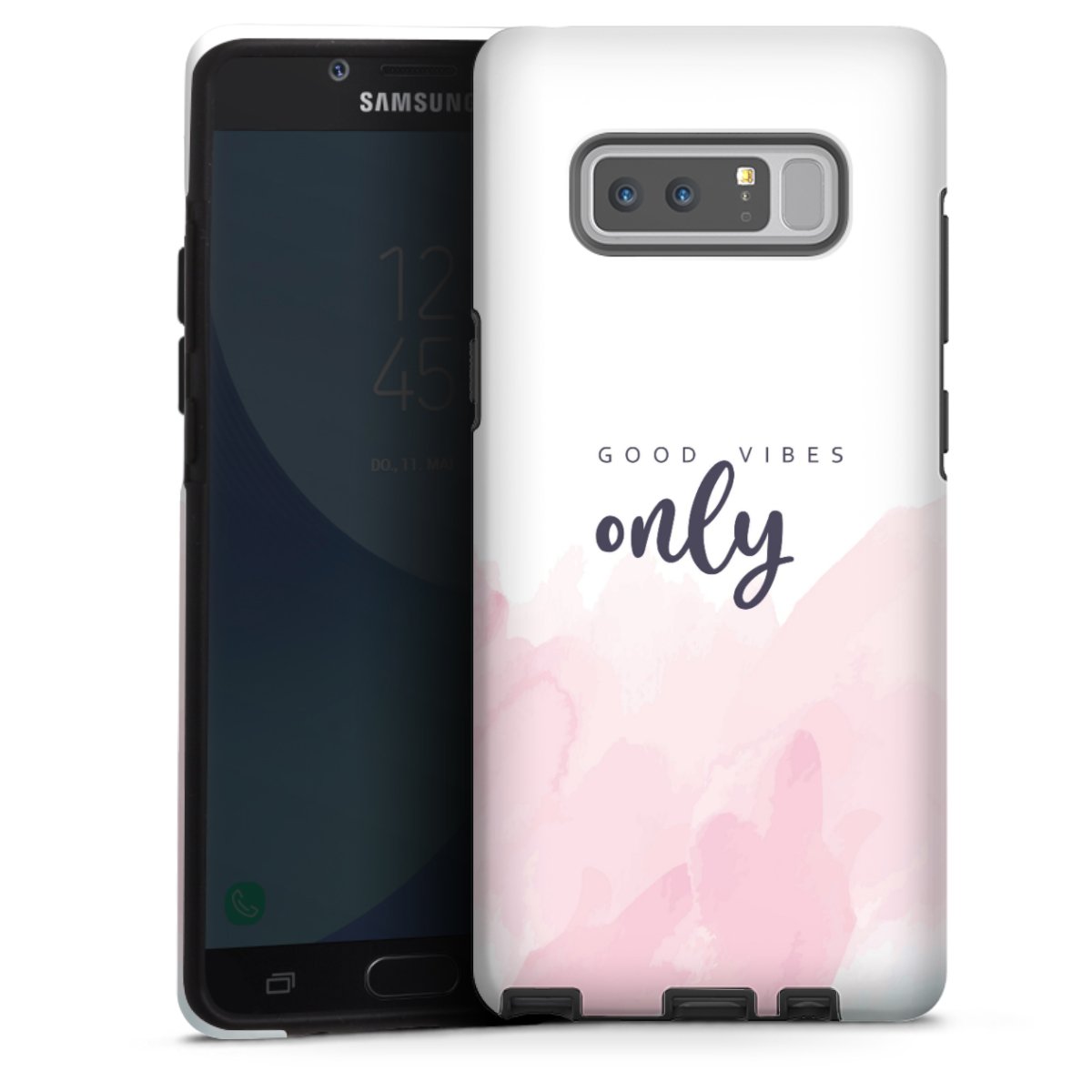 Bei dieser Handyhülle nutzen wird den besonders langlebigen Sublimationsdruck. Dieses raffinierte Druckverfahren sticht durch sein hochwertiges, gestochen scharfes Druckbild in brillanten Farben hervor. Der Druckbereich umfasst die ganze Hartschale inklusive der Ecken und Kanten, lediglich der Silikon-Einleger bleibt einfarbig schwarz. Wähle für Dein Design entweder eines unserer exklusiven Shop-Motive, oder werde kreativ und gestalte Dein Wunschdesign zum Beispiel mit Fotos und Overlays selbst.