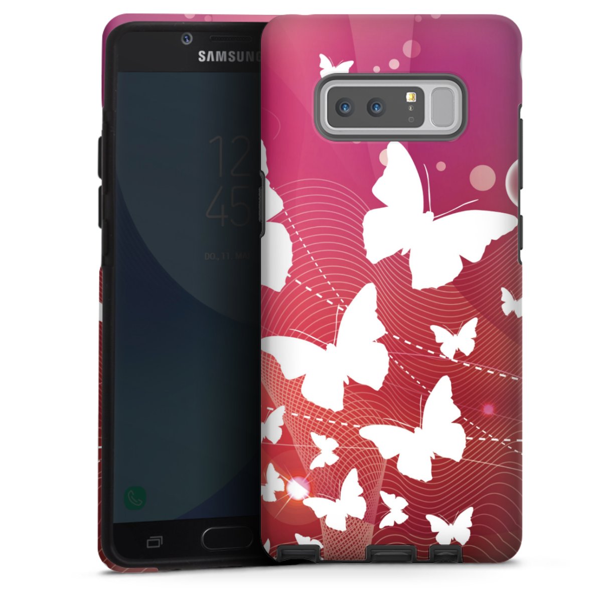 Bei dieser Handyhülle nutzen wird den besonders langlebigen Sublimationsdruck. Dieses raffinierte Druckverfahren sticht durch sein hochwertiges, gestochen scharfes Druckbild in brillanten Farben hervor. Der Druckbereich umfasst die ganze Hartschale inklusive der Ecken und Kanten, lediglich der Silikon-Einleger bleibt einfarbig schwarz. Wähle für Dein Design entweder eines unserer exklusiven Shop-Motive, oder werde kreativ und gestalte Dein Wunschdesign zum Beispiel mit Fotos und Overlays selbst.