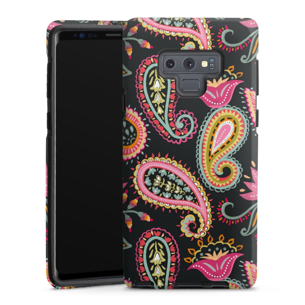 Bei dieser Handyhülle nutzen wird den besonders langlebigen Sublimationsdruck. Dieses raffinierte Druckverfahren sticht durch sein hochwertiges, gestochen scharfes Druckbild in brillanten Farben hervor. Der Druckbereich umfasst die ganze Hartschale inklusive der Ecken und Kanten, lediglich der Silikon-Einleger bleibt einfarbig schwarz. Wähle für Dein Design entweder eines unserer exklusiven Shop-Motive, oder werde kreativ und gestalte Dein Wunschdesign zum Beispiel mit Fotos und Overlays selbst.