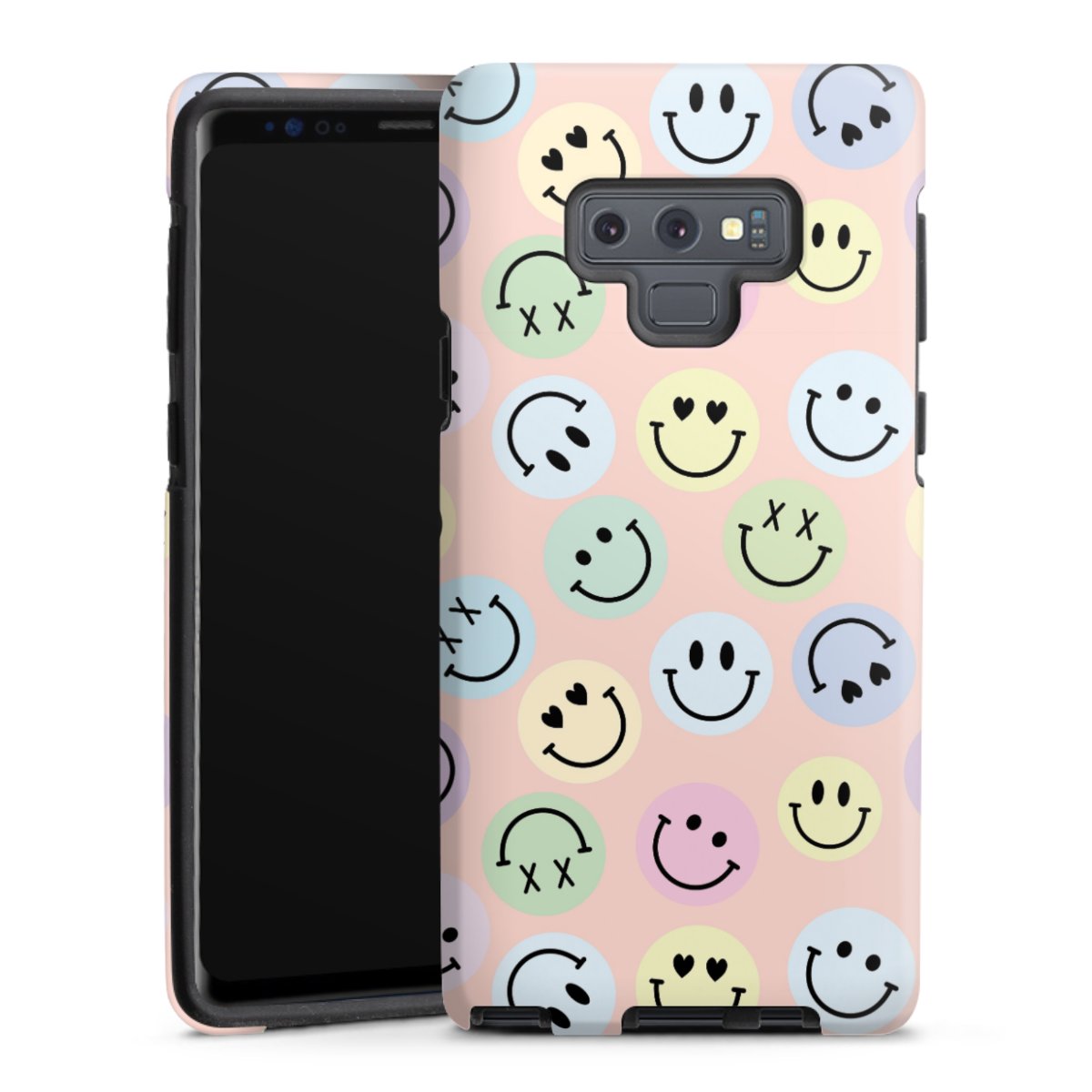 Bei dieser Handyhülle nutzen wird den besonders langlebigen Sublimationsdruck. Dieses raffinierte Druckverfahren sticht durch sein hochwertiges, gestochen scharfes Druckbild in brillanten Farben hervor. Der Druckbereich umfasst die ganze Hartschale inklusive der Ecken und Kanten, lediglich der Silikon-Einleger bleibt einfarbig schwarz. Wähle für Dein Design entweder eines unserer exklusiven Shop-Motive, oder werde kreativ und gestalte Dein Wunschdesign zum Beispiel mit Fotos und Overlays selbst.