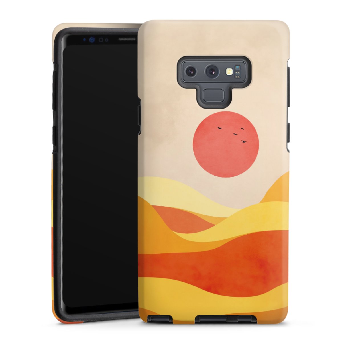 Bei dieser Handyhülle nutzen wird den besonders langlebigen Sublimationsdruck. Dieses raffinierte Druckverfahren sticht durch sein hochwertiges, gestochen scharfes Druckbild in brillanten Farben hervor. Der Druckbereich umfasst die ganze Hartschale inklusive der Ecken und Kanten, lediglich der Silikon-Einleger bleibt einfarbig schwarz. Wähle für Dein Design entweder eines unserer exklusiven Shop-Motive, oder werde kreativ und gestalte Dein Wunschdesign zum Beispiel mit Fotos und Overlays selbst.