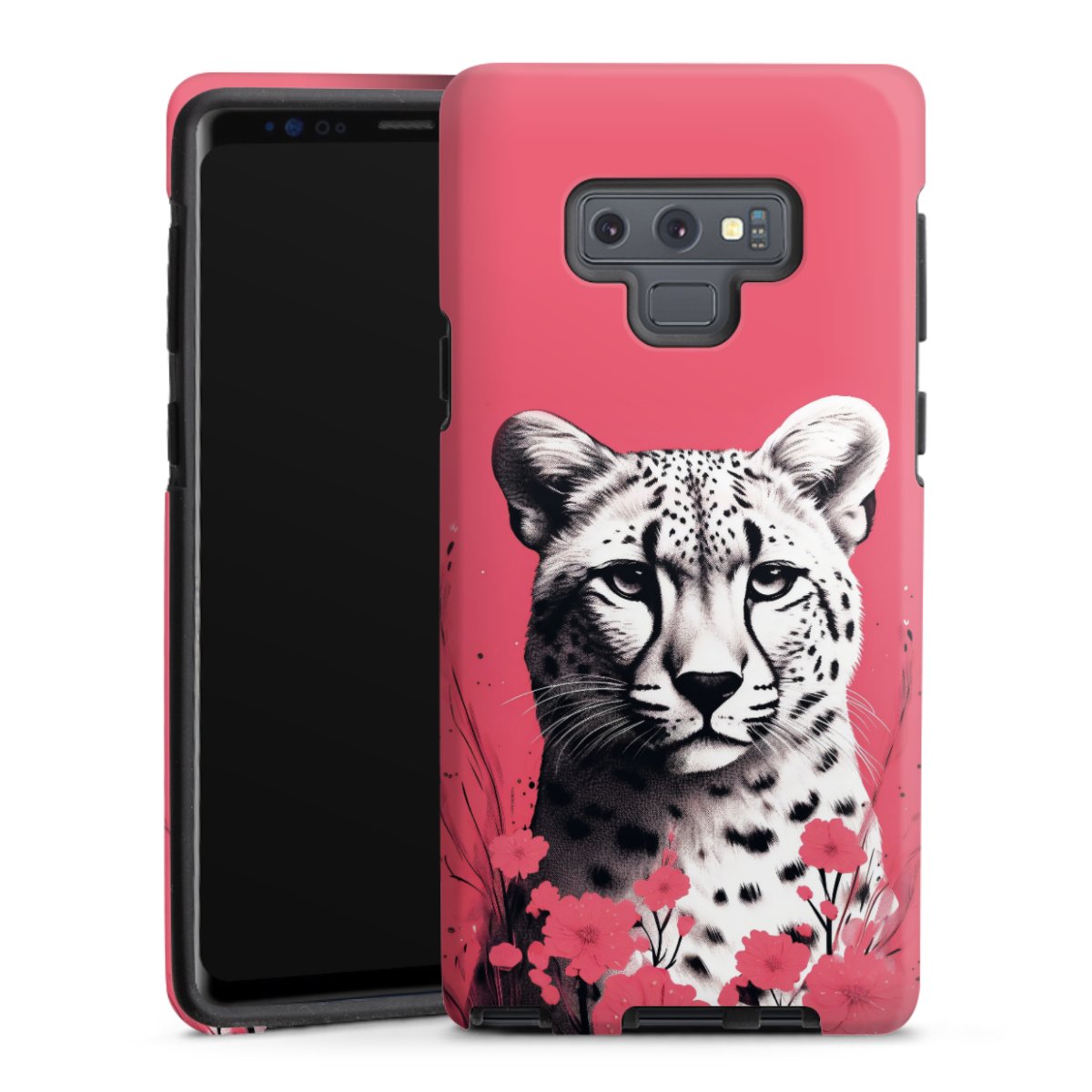 Bei dieser Handyhülle nutzen wird den besonders langlebigen Sublimationsdruck. Dieses raffinierte Druckverfahren sticht durch sein hochwertiges, gestochen scharfes Druckbild in brillanten Farben hervor. Der Druckbereich umfasst die ganze Hartschale inklusive der Ecken und Kanten, lediglich der Silikon-Einleger bleibt einfarbig schwarz. Wähle für Dein Design entweder eines unserer exklusiven Shop-Motive, oder werde kreativ und gestalte Dein Wunschdesign zum Beispiel mit Fotos und Overlays selbst.