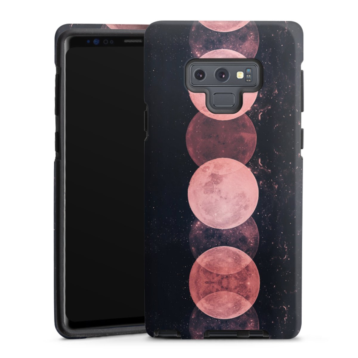 Bei dieser Handyhülle nutzen wird den besonders langlebigen Sublimationsdruck. Dieses raffinierte Druckverfahren sticht durch sein hochwertiges, gestochen scharfes Druckbild in brillanten Farben hervor. Der Druckbereich umfasst die ganze Hartschale inklusive der Ecken und Kanten, lediglich der Silikon-Einleger bleibt einfarbig schwarz. Wähle für Dein Design entweder eines unserer exklusiven Shop-Motive, oder werde kreativ und gestalte Dein Wunschdesign zum Beispiel mit Fotos und Overlays selbst.