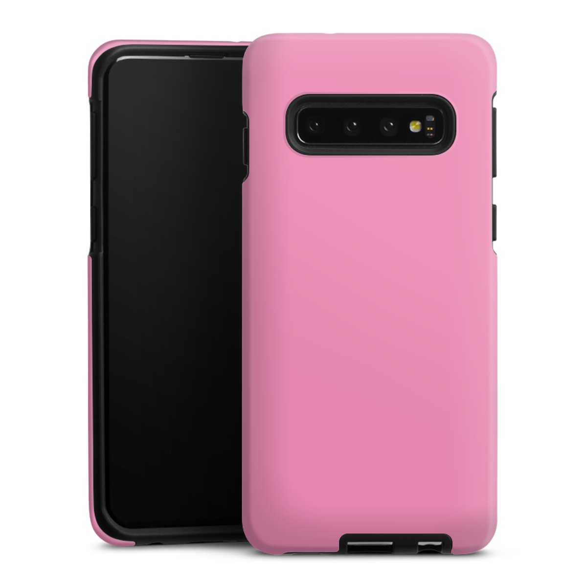 Bei dieser Handyhülle nutzen wird den besonders langlebigen Sublimationsdruck. Dieses raffinierte Druckverfahren sticht durch sein hochwertiges, gestochen scharfes Druckbild in brillanten Farben hervor. Der Druckbereich umfasst die ganze Hartschale inklusive der Ecken und Kanten, lediglich der Silikon-Einleger bleibt einfarbig schwarz. Wähle für Dein Design entweder eines unserer exklusiven Shop-Motive, oder werde kreativ und gestalte Dein Wunschdesign zum Beispiel mit Fotos und Overlays selbst.