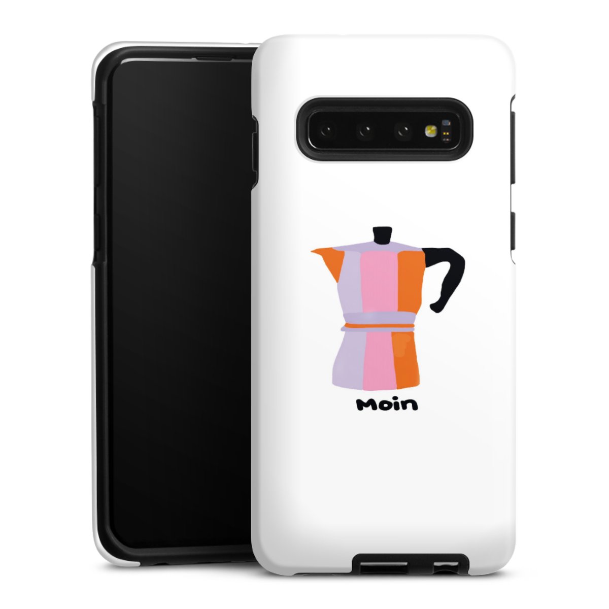Bei dieser Handyhülle nutzen wird den besonders langlebigen Sublimationsdruck. Dieses raffinierte Druckverfahren sticht durch sein hochwertiges, gestochen scharfes Druckbild in brillanten Farben hervor. Der Druckbereich umfasst die ganze Hartschale inklusive der Ecken und Kanten, lediglich der Silikon-Einleger bleibt einfarbig schwarz. Wähle für Dein Design entweder eines unserer exklusiven Shop-Motive, oder werde kreativ und gestalte Dein Wunschdesign zum Beispiel mit Fotos und Overlays selbst.