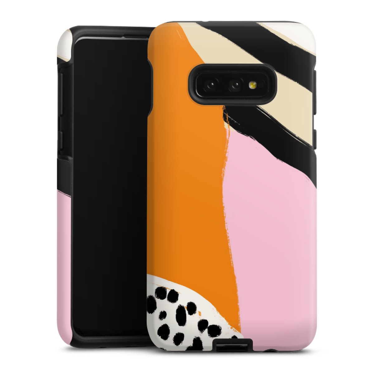 Bei dieser Handyhülle nutzen wird den besonders langlebigen Sublimationsdruck. Dieses raffinierte Druckverfahren sticht durch sein hochwertiges, gestochen scharfes Druckbild in brillanten Farben hervor. Der Druckbereich umfasst die ganze Hartschale inklusive der Ecken und Kanten, lediglich der Silikon-Einleger bleibt einfarbig schwarz. Wähle für Dein Design entweder eines unserer exklusiven Shop-Motive, oder werde kreativ und gestalte Dein Wunschdesign zum Beispiel mit Fotos und Overlays selbst.
