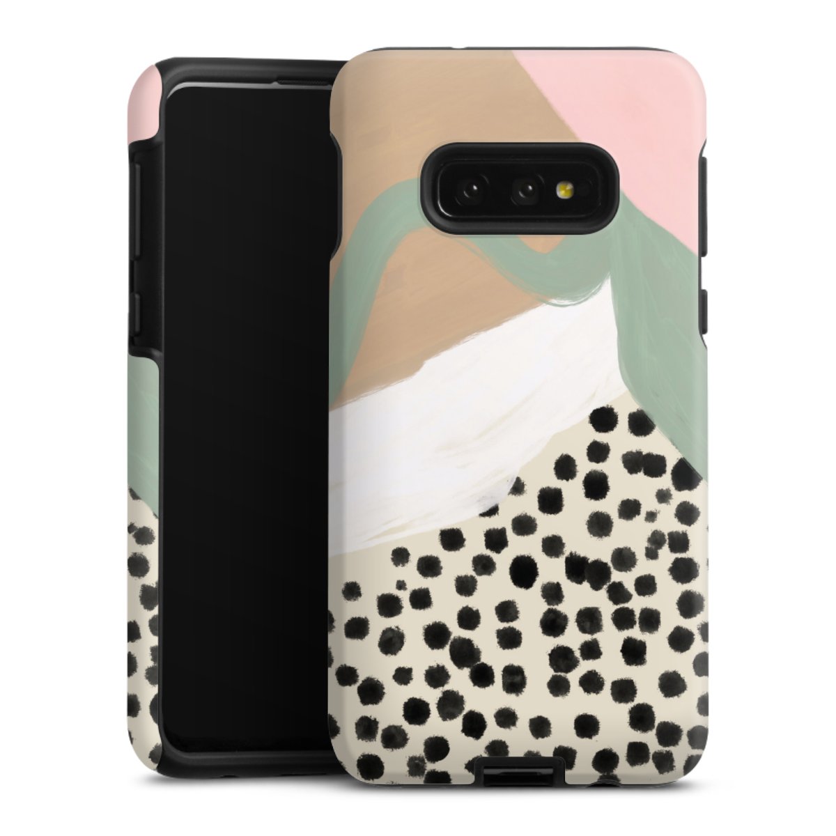 Bei dieser Handyhülle nutzen wird den besonders langlebigen Sublimationsdruck. Dieses raffinierte Druckverfahren sticht durch sein hochwertiges, gestochen scharfes Druckbild in brillanten Farben hervor. Der Druckbereich umfasst die ganze Hartschale inklusive der Ecken und Kanten, lediglich der Silikon-Einleger bleibt einfarbig schwarz. Wähle für Dein Design entweder eines unserer exklusiven Shop-Motive, oder werde kreativ und gestalte Dein Wunschdesign zum Beispiel mit Fotos und Overlays selbst.