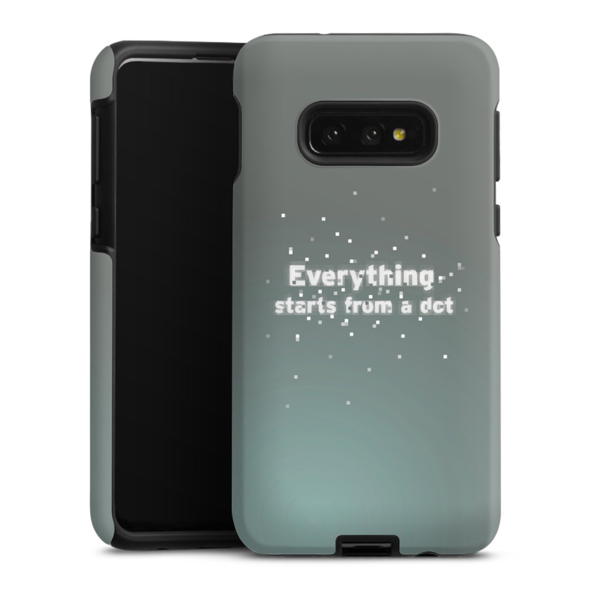 Bei dieser Handyhülle nutzen wird den besonders langlebigen Sublimationsdruck. Dieses raffinierte Druckverfahren sticht durch sein hochwertiges, gestochen scharfes Druckbild in brillanten Farben hervor. Der Druckbereich umfasst die ganze Hartschale inklusive der Ecken und Kanten, lediglich der Silikon-Einleger bleibt einfarbig schwarz. Wähle für Dein Design entweder eines unserer exklusiven Shop-Motive, oder werde kreativ und gestalte Dein Wunschdesign zum Beispiel mit Fotos und Overlays selbst.