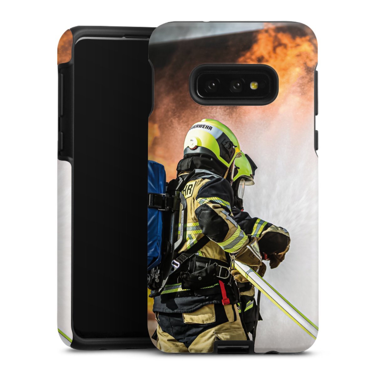 Bei dieser Handyhülle nutzen wird den besonders langlebigen Sublimationsdruck. Dieses raffinierte Druckverfahren sticht durch sein hochwertiges, gestochen scharfes Druckbild in brillanten Farben hervor. Der Druckbereich umfasst die ganze Hartschale inklusive der Ecken und Kanten, lediglich der Silikon-Einleger bleibt einfarbig schwarz. Wähle für Dein Design entweder eines unserer exklusiven Shop-Motive, oder werde kreativ und gestalte Dein Wunschdesign zum Beispiel mit Fotos und Overlays selbst.