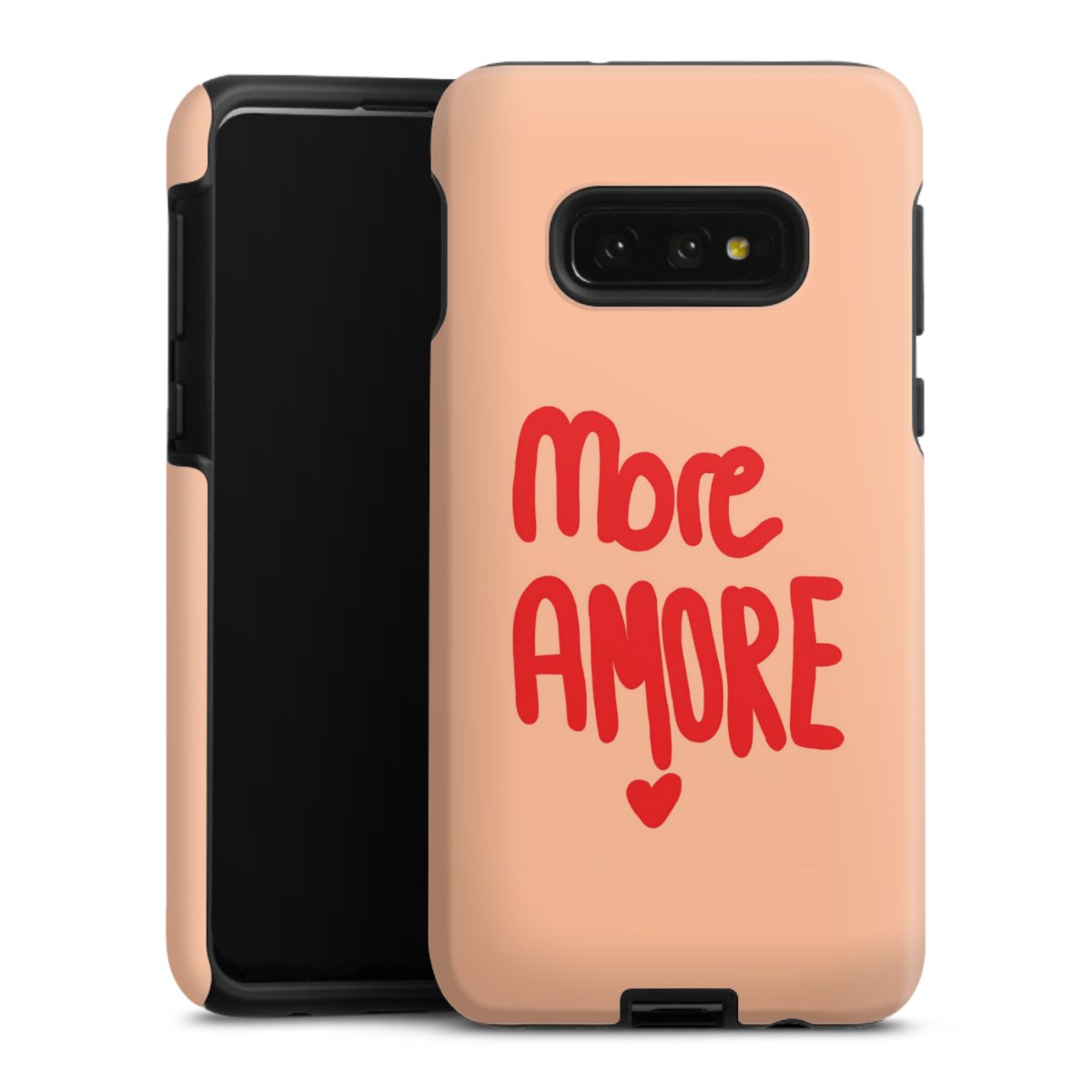 Bei dieser Handyhülle nutzen wird den besonders langlebigen Sublimationsdruck. Dieses raffinierte Druckverfahren sticht durch sein hochwertiges, gestochen scharfes Druckbild in brillanten Farben hervor. Der Druckbereich umfasst die ganze Hartschale inklusive der Ecken und Kanten, lediglich der Silikon-Einleger bleibt einfarbig schwarz. Wähle für Dein Design entweder eines unserer exklusiven Shop-Motive, oder werde kreativ und gestalte Dein Wunschdesign zum Beispiel mit Fotos und Overlays selbst.