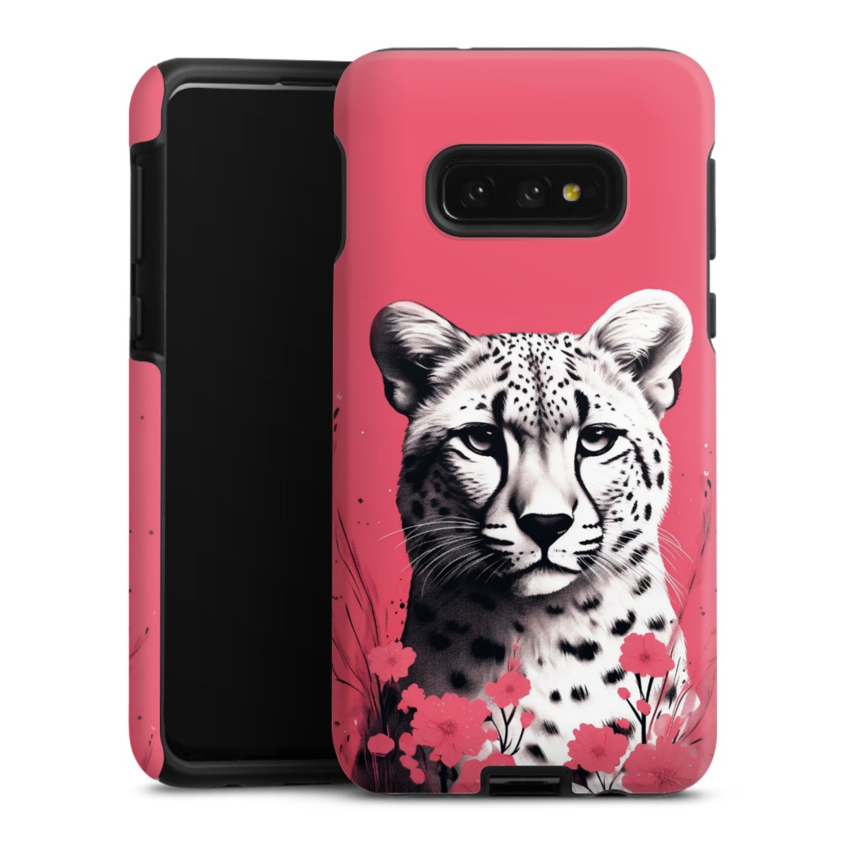 Bei dieser Handyhülle nutzen wird den besonders langlebigen Sublimationsdruck. Dieses raffinierte Druckverfahren sticht durch sein hochwertiges, gestochen scharfes Druckbild in brillanten Farben hervor. Der Druckbereich umfasst die ganze Hartschale inklusive der Ecken und Kanten, lediglich der Silikon-Einleger bleibt einfarbig schwarz. Wähle für Dein Design entweder eines unserer exklusiven Shop-Motive, oder werde kreativ und gestalte Dein Wunschdesign zum Beispiel mit Fotos und Overlays selbst.