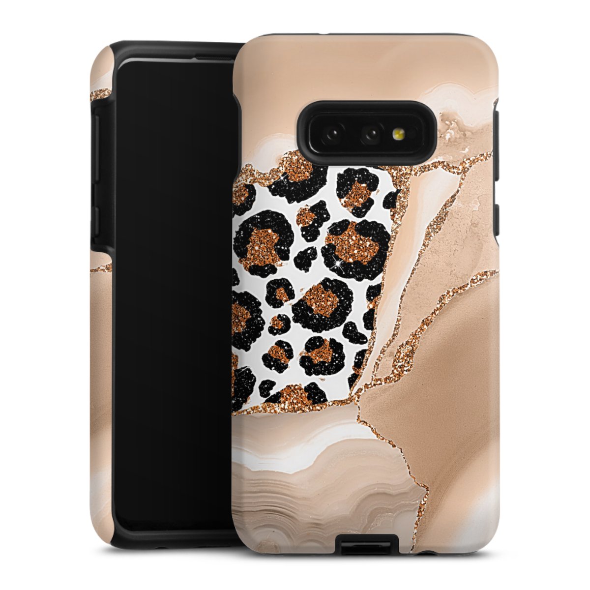Bei dieser Handyhülle nutzen wird den besonders langlebigen Sublimationsdruck. Dieses raffinierte Druckverfahren sticht durch sein hochwertiges, gestochen scharfes Druckbild in brillanten Farben hervor. Der Druckbereich umfasst die ganze Hartschale inklusive der Ecken und Kanten, lediglich der Silikon-Einleger bleibt einfarbig schwarz. Wähle für Dein Design entweder eines unserer exklusiven Shop-Motive, oder werde kreativ und gestalte Dein Wunschdesign zum Beispiel mit Fotos und Overlays selbst.