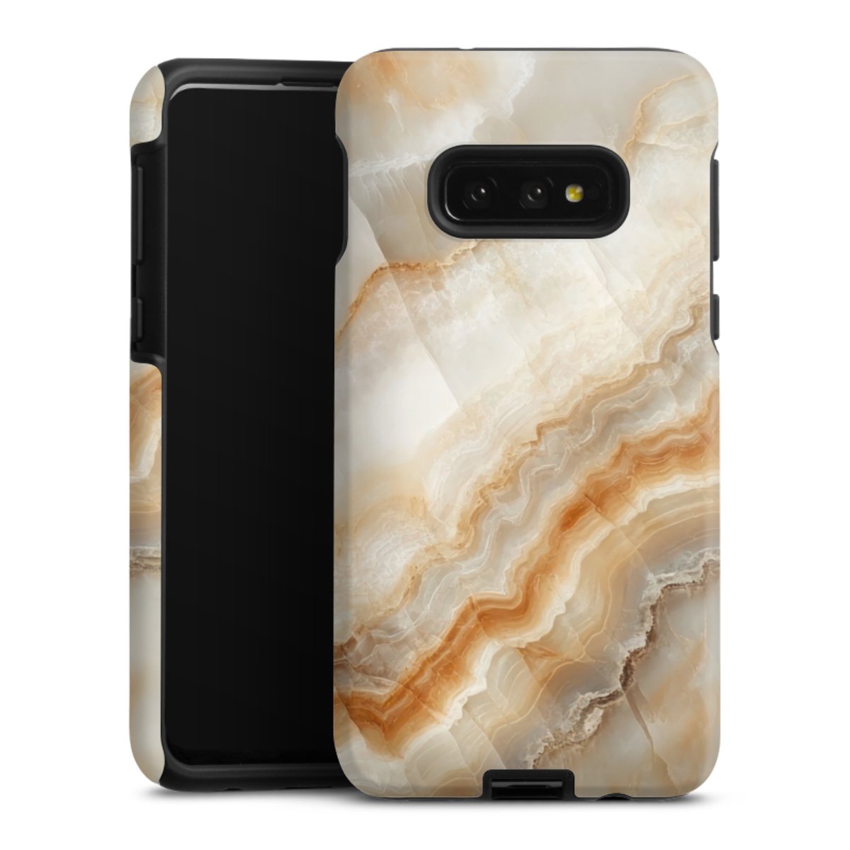 Unsere sicherste Schutzhülle vereint die Vorteile der Silikonhülle mit den Vorzügen des Premium Cases und besteht aus zwei Teilen: Innen federt der flexible Silikonkern aus robustem TPU (thermoplastisches Polyurethan) zuverlässig Stöße und Stürze ab, außen sorgt die widerstandsfähige und langlebige Hartschale aus Polycarbonat für zusätzliche Stabilität. Die Oberfläche der insgesamt 2,6 mm starken Hülle fühlt sich angenehm glatt an und macht das Tough Case zu einem echten Handschmeichler. Die Handyhülle ist in glänzend und matt erhältlich, der Silikoneinleger ist Schwarz.