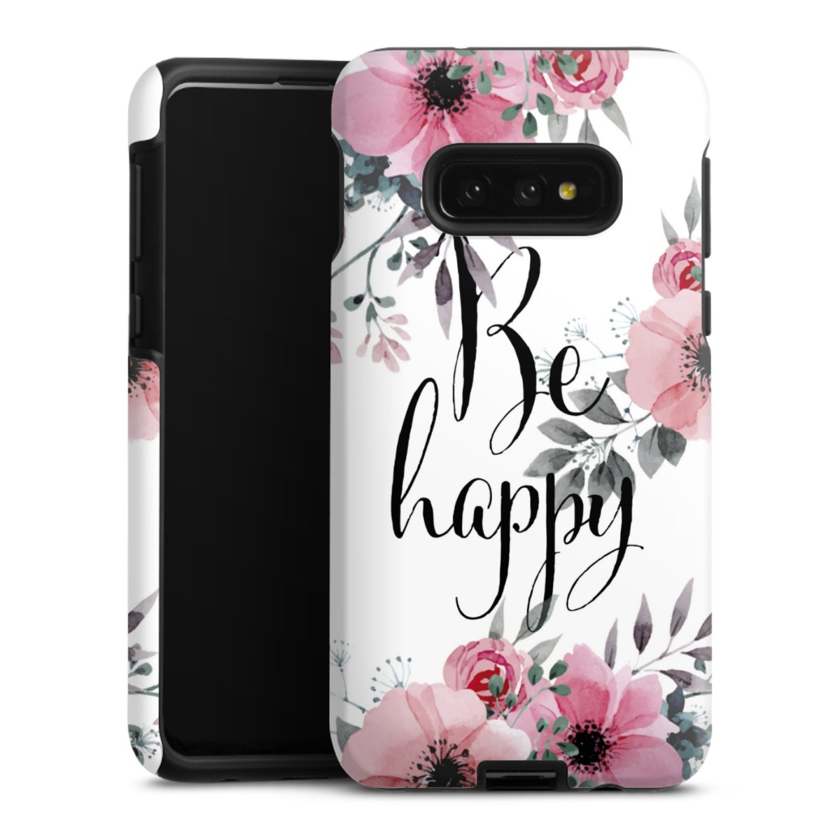 Bei dieser Handyhülle nutzen wird den besonders langlebigen Sublimationsdruck. Dieses raffinierte Druckverfahren sticht durch sein hochwertiges, gestochen scharfes Druckbild in brillanten Farben hervor. Der Druckbereich umfasst die ganze Hartschale inklusive der Ecken und Kanten, lediglich der Silikon-Einleger bleibt einfarbig schwarz. Wähle für Dein Design entweder eines unserer exklusiven Shop-Motive, oder werde kreativ und gestalte Dein Wunschdesign zum Beispiel mit Fotos und Overlays selbst.