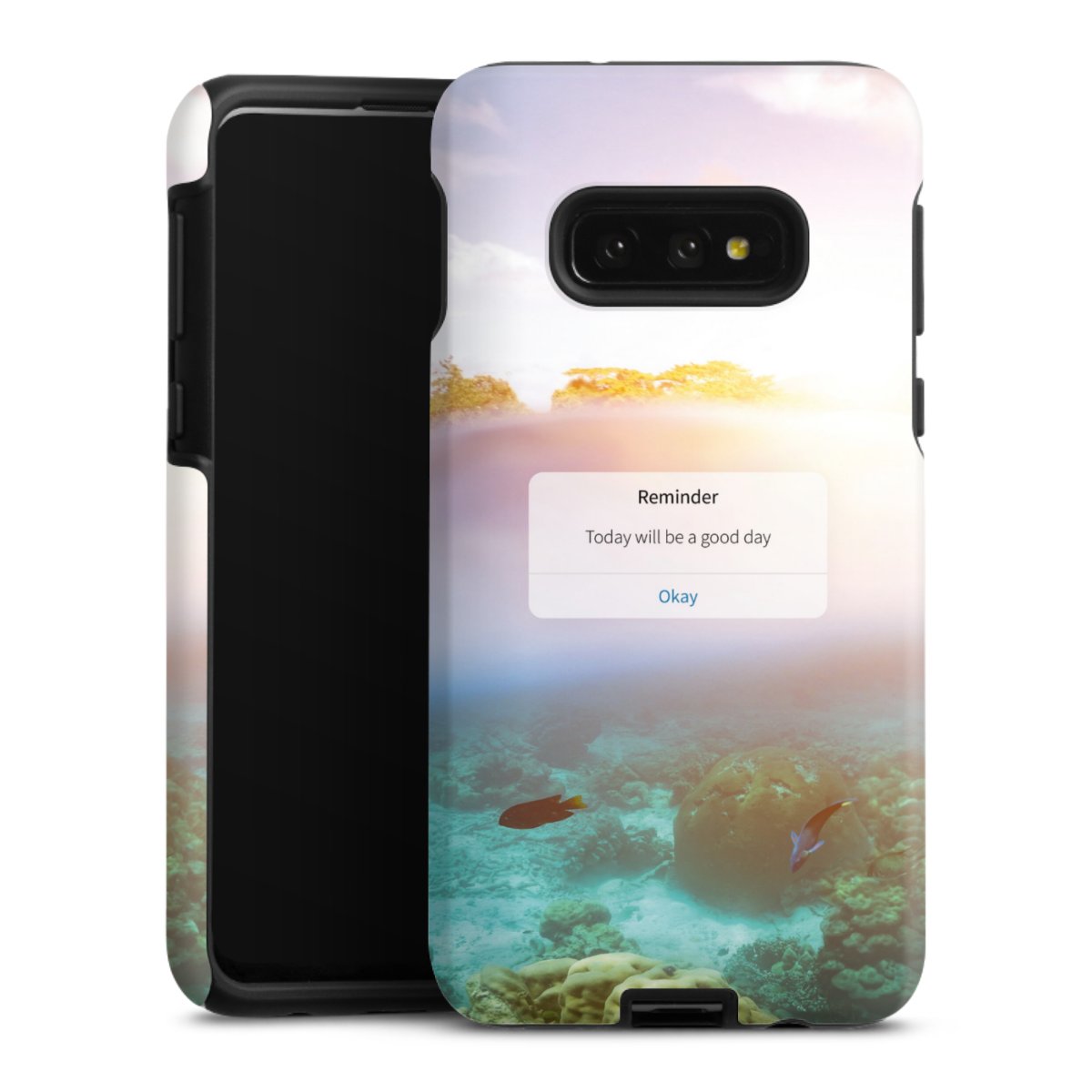 Bei dieser Handyhülle nutzen wird den besonders langlebigen Sublimationsdruck. Dieses raffinierte Druckverfahren sticht durch sein hochwertiges, gestochen scharfes Druckbild in brillanten Farben hervor. Der Druckbereich umfasst die ganze Hartschale inklusive der Ecken und Kanten, lediglich der Silikon-Einleger bleibt einfarbig schwarz. Wähle für Dein Design entweder eines unserer exklusiven Shop-Motive, oder werde kreativ und gestalte Dein Wunschdesign zum Beispiel mit Fotos und Overlays selbst.