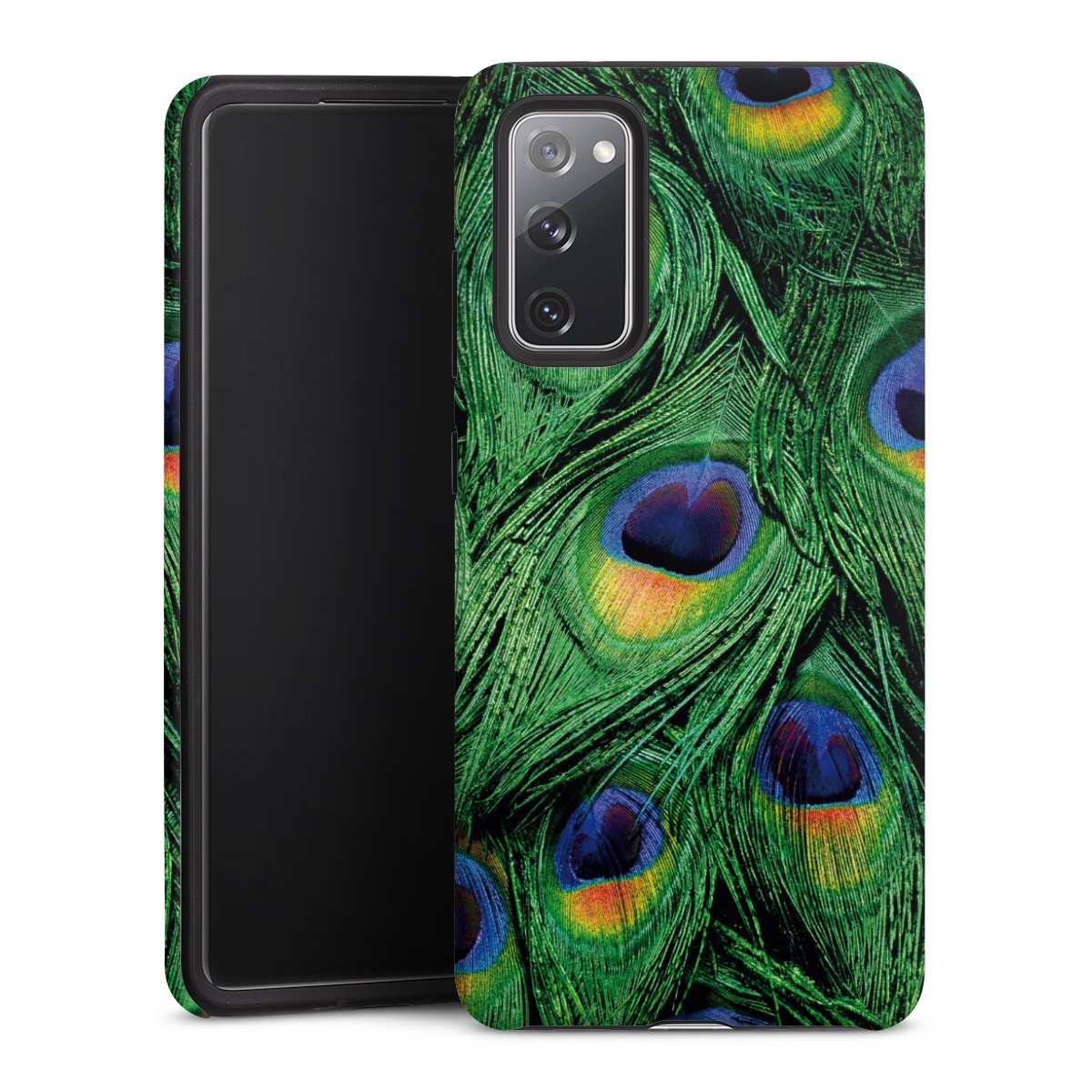 Bei dieser Handyhülle nutzen wird den besonders langlebigen Sublimationsdruck. Dieses raffinierte Druckverfahren sticht durch sein hochwertiges, gestochen scharfes Druckbild in brillanten Farben hervor. Der Druckbereich umfasst die ganze Hartschale inklusive der Ecken und Kanten, lediglich der Silikon-Einleger bleibt einfarbig schwarz. Wähle für Dein Design entweder eines unserer exklusiven Shop-Motive, oder werde kreativ und gestalte Dein Wunschdesign zum Beispiel mit Fotos und Overlays selbst.